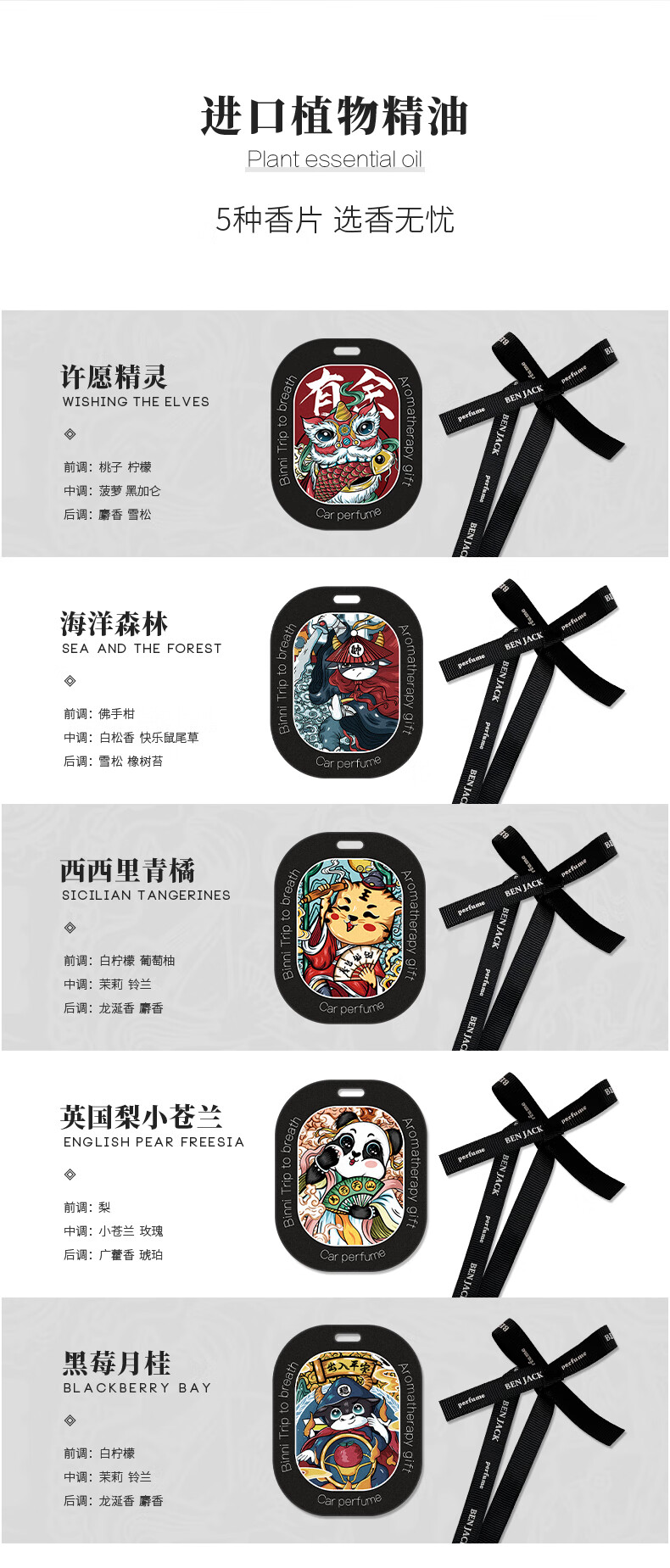 迪加伦马年国潮车载香片车内高档汽车高级香薰片挂件衣柜除甲醛车用 5片
