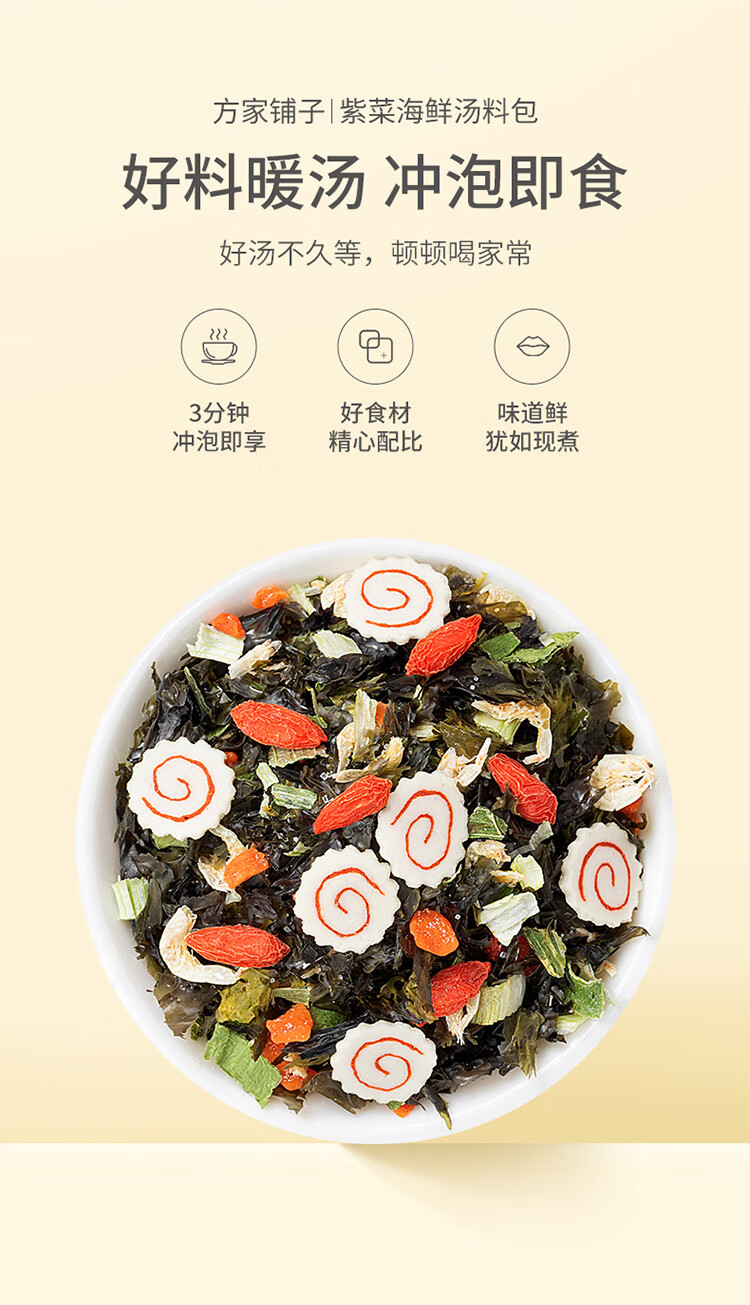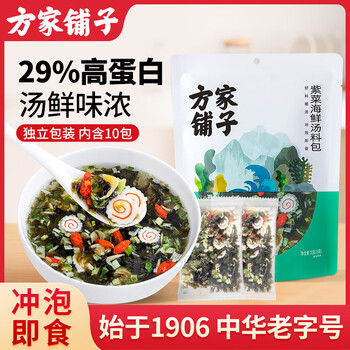 方家铺子中华老字号 紫菜虾皮鱼板汤70g(10袋) 海鲜汤料包 速食即食汤