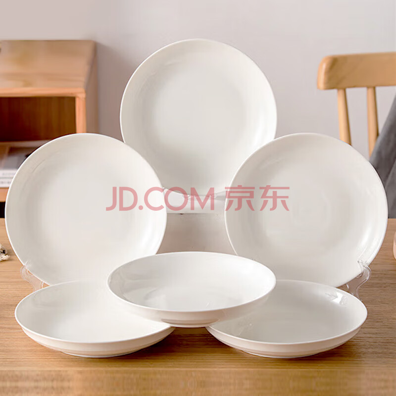 洁雅杰陶瓷盘家用白瓷盘子8英寸中式釉下彩餐盘菜盘汤盘微波炉可用6只装