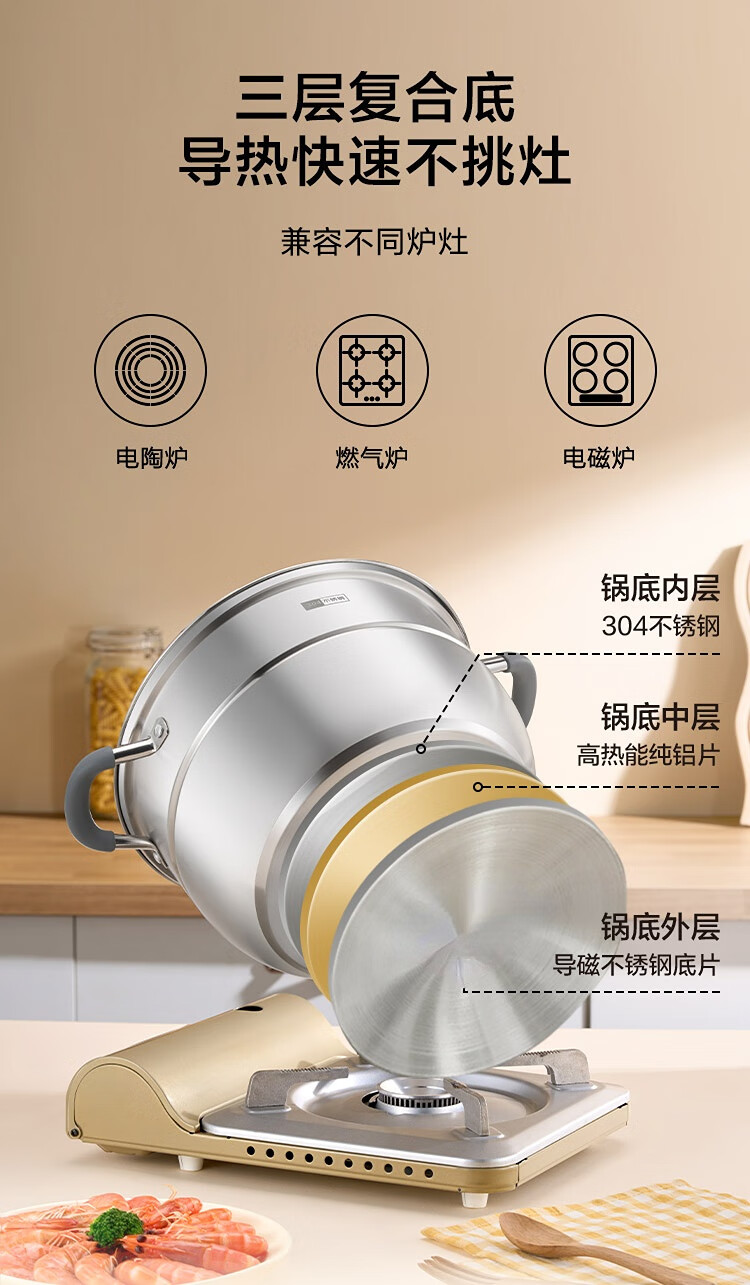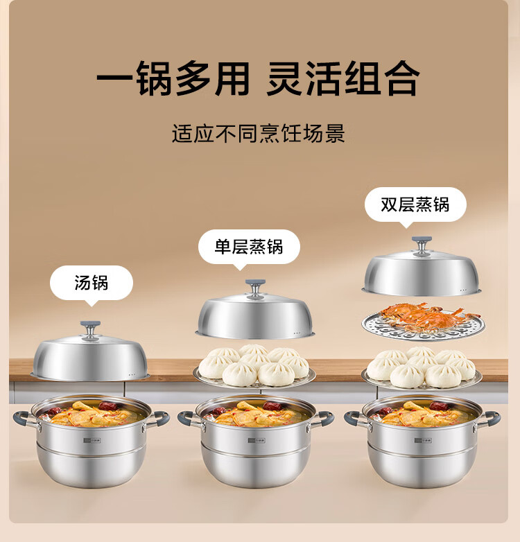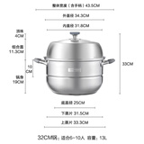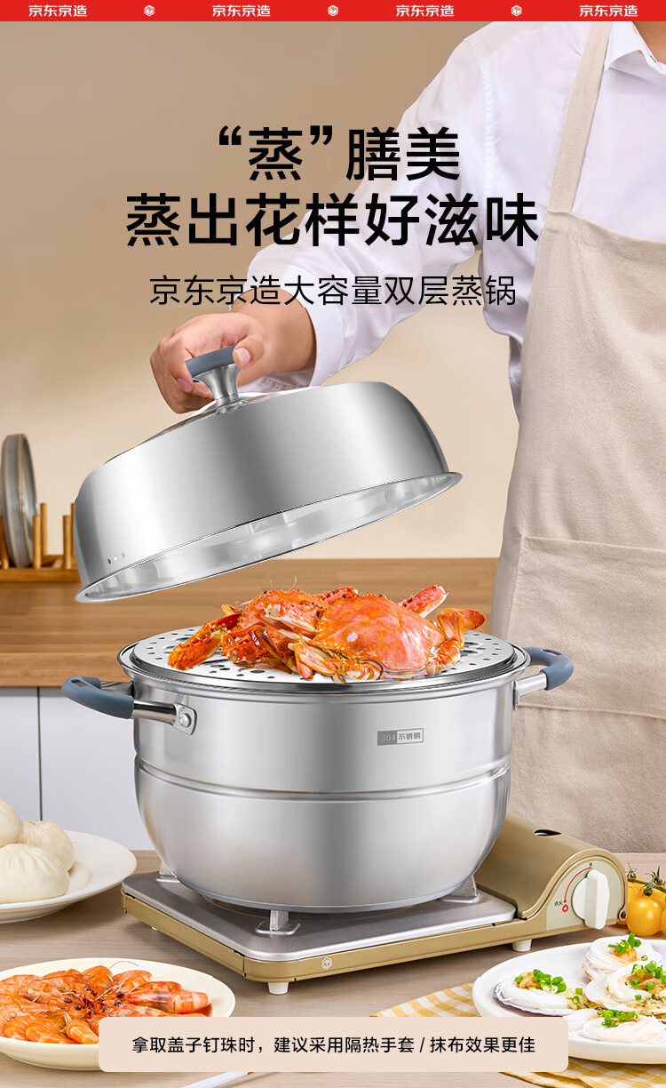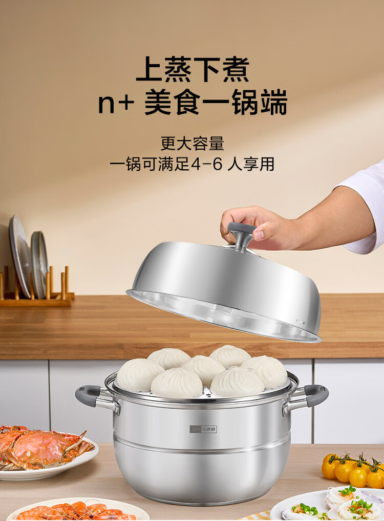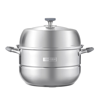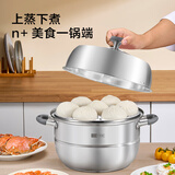 京造 蒸锅 大容量304不锈钢汤锅加厚炖蒸煮燃气灶家用 双层32cm