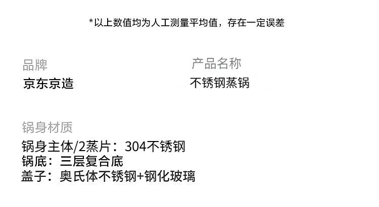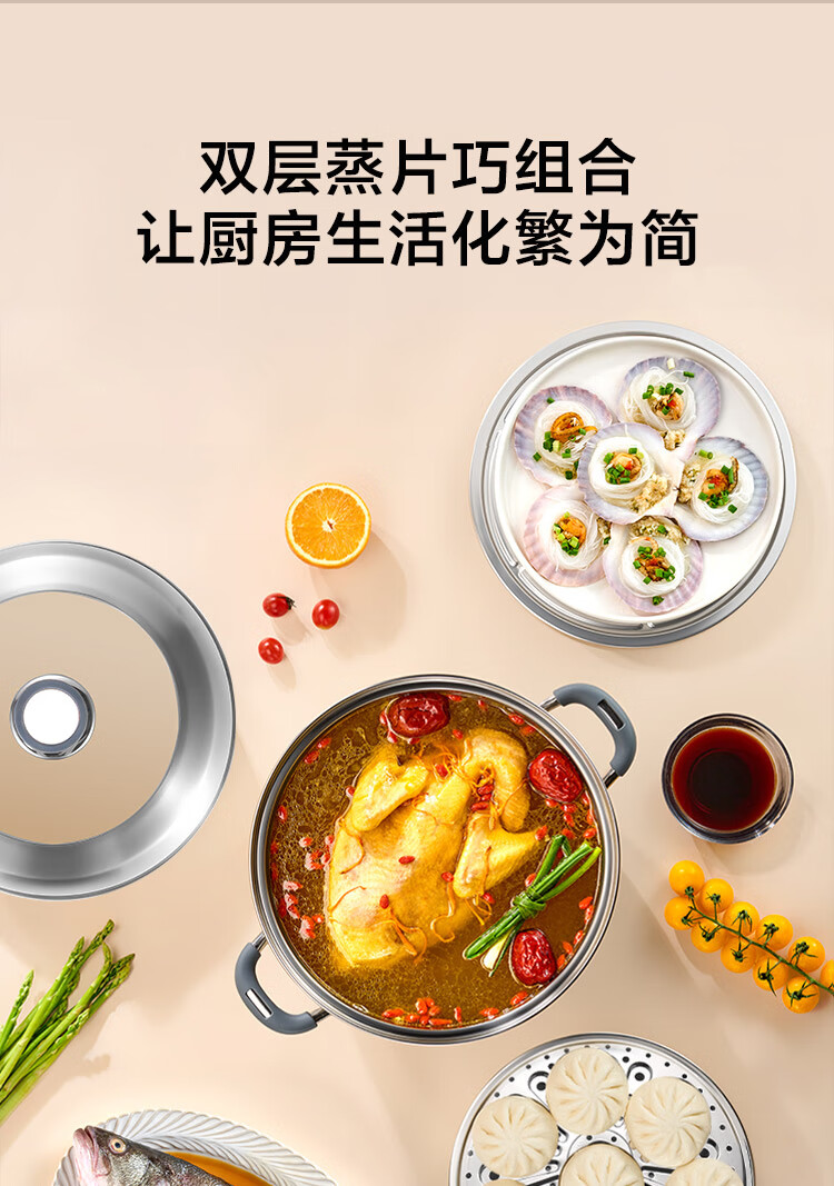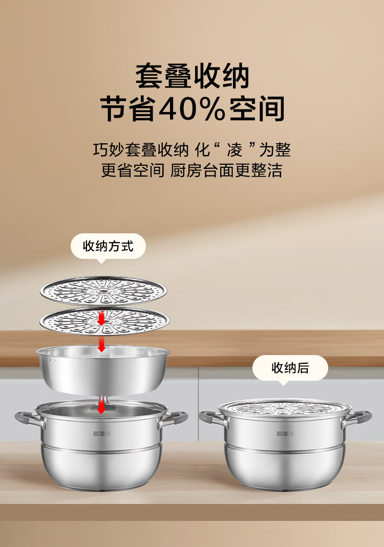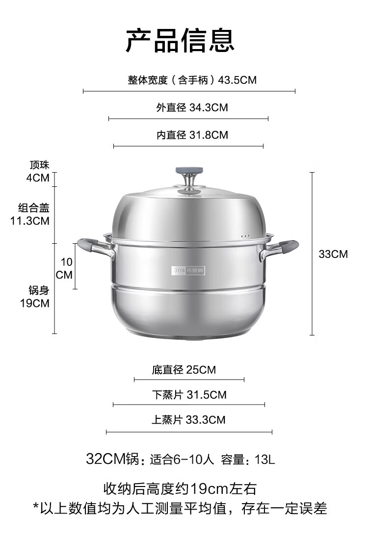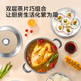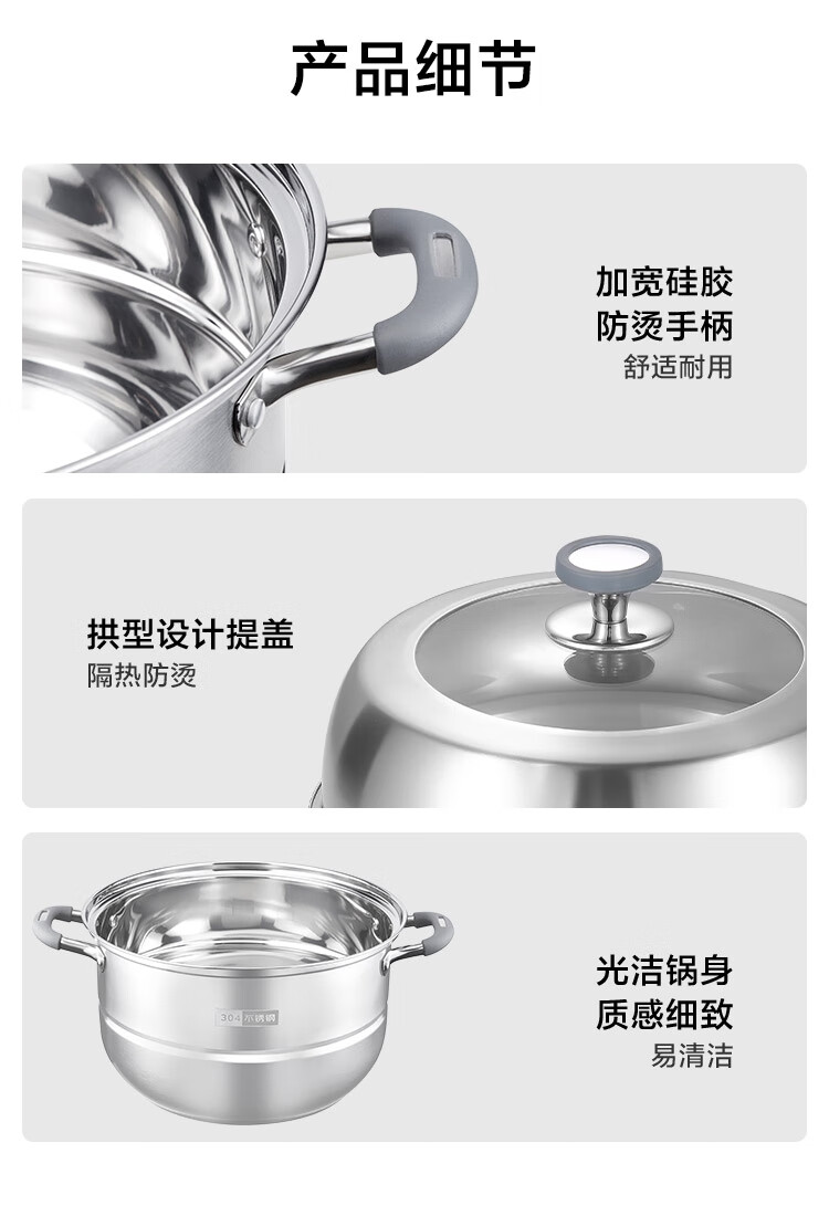 京造 蒸锅 大容量304不锈钢汤锅加厚炖蒸煮燃气灶家用 双层32cm