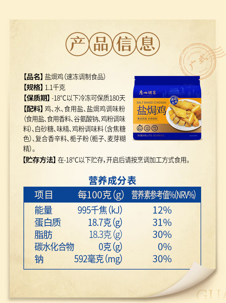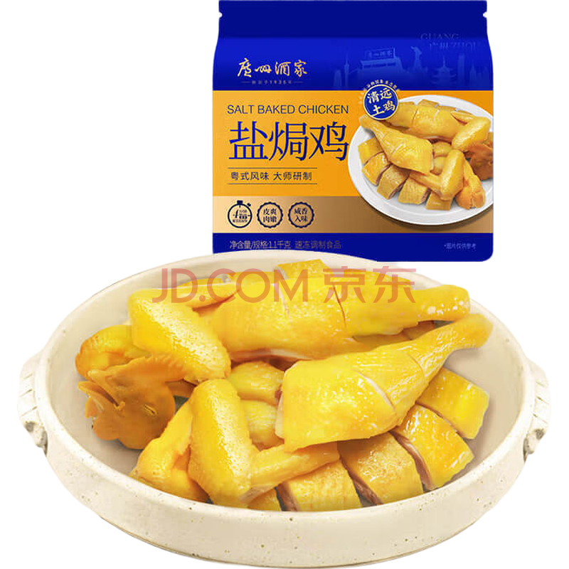 广州酒家利口福 盐焗鸡(清远土鸡)1100g 快手菜 熟鸡熟食 粤式风味 整鸡