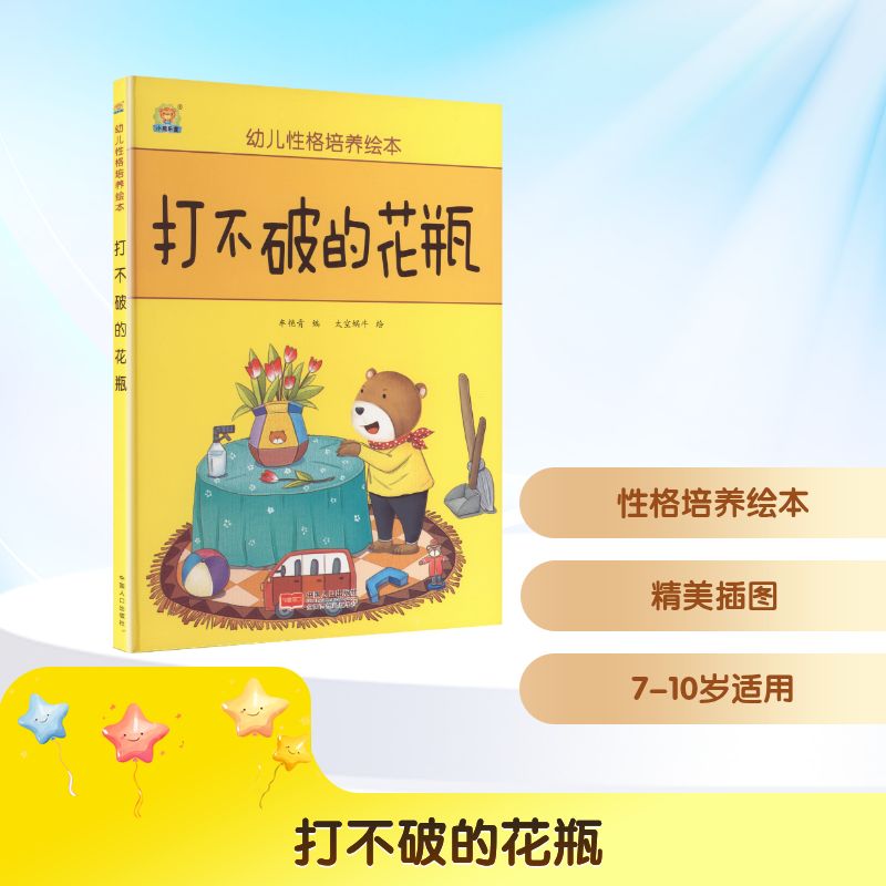 《幼儿性格培养绘本》共包含10册,分别为:永远的爱、打不破的花瓶、新年快乐、最棒的礼物、温暖的冬夜、自己写作业、踢球去吧、我可以和您一起睡吗、我们去钓鱼吧、我是主角。以主人公小熊的视角,记述发生在身边的一系列故事,寓教于乐。本册《打不破的花瓶》讲述的是小熊不小心打破了家里的花瓶,虽然不是故意的,但他不想掀谎,虽然自己的零用钱不够买一个新的花瓶,但他勇于承担这一份责任,自己动手用硬纸壳做了一个美美的、打不破的花瓶,弥补了自己的错误。