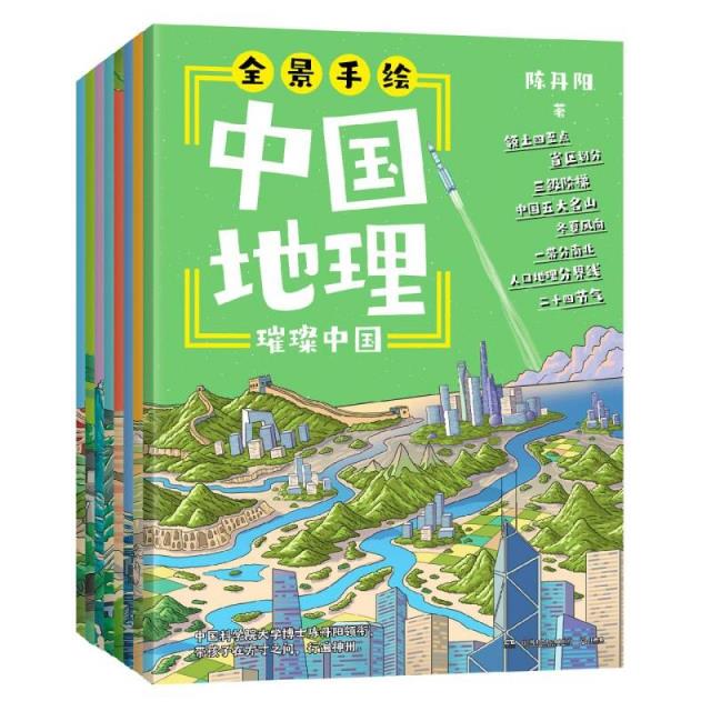 《全景手绘中国地理》(共8册)由陈丹阳创作。该套书以《璀璨中国》开篇,涵盖20个主题,从不同角度介绍中国地理知识,如从世界视角看中国、国界线特点、地形阶梯、气候差异、河流分布、名山特色、人口分界线等,还涉及交通、天文历法、工业等内容,让读者全面了解中国地理概况。