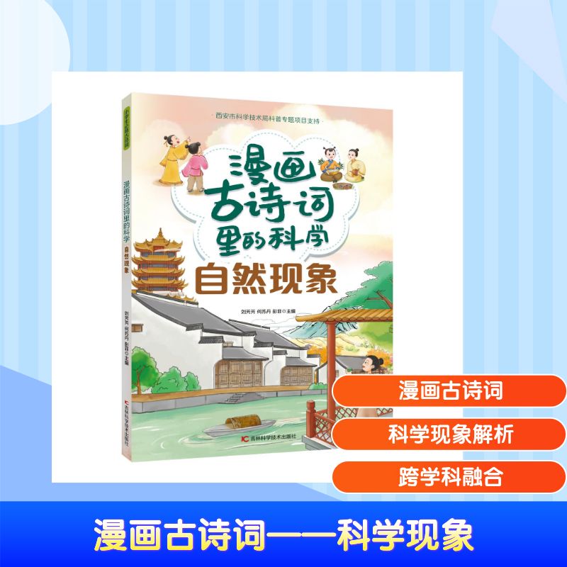 这是一本专为儿童设计的趣味科普绘本,巧妙地将古诗词的韵味与自然现象的科普知识相结合,通过生动有趣的漫画故事和细腻精美的插图,引领孩子们走进古诗词中描绘的自然奇观,感受大自然的壮丽与神秘。