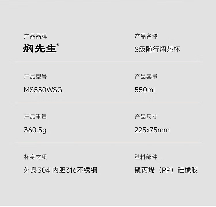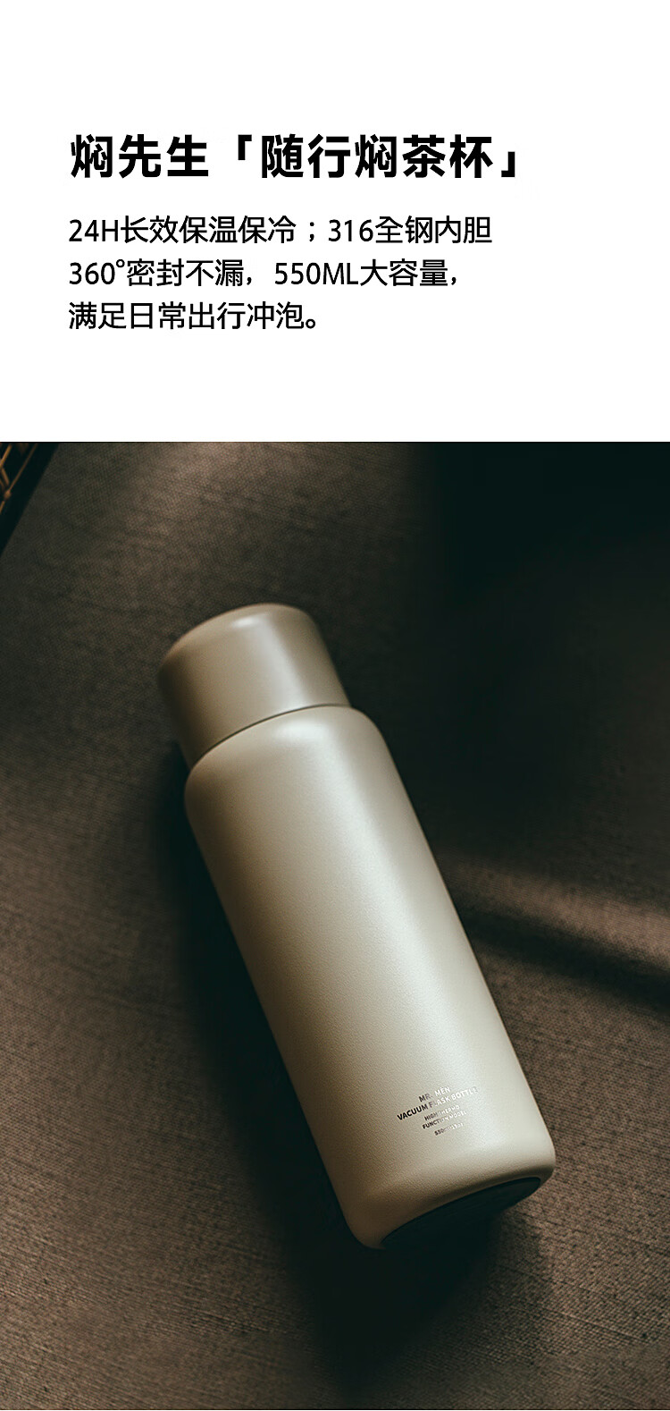焖先生陶瓷内胆保温杯不锈钢焖茶杯车载旅行泡茶水杯定制 松木杏550ml