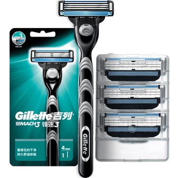 吉列锋速3经典1刀架4刀头 差旅便携 3层刀片手动 剃刮胡须刀男士实用礼物 旗舰 非吉利