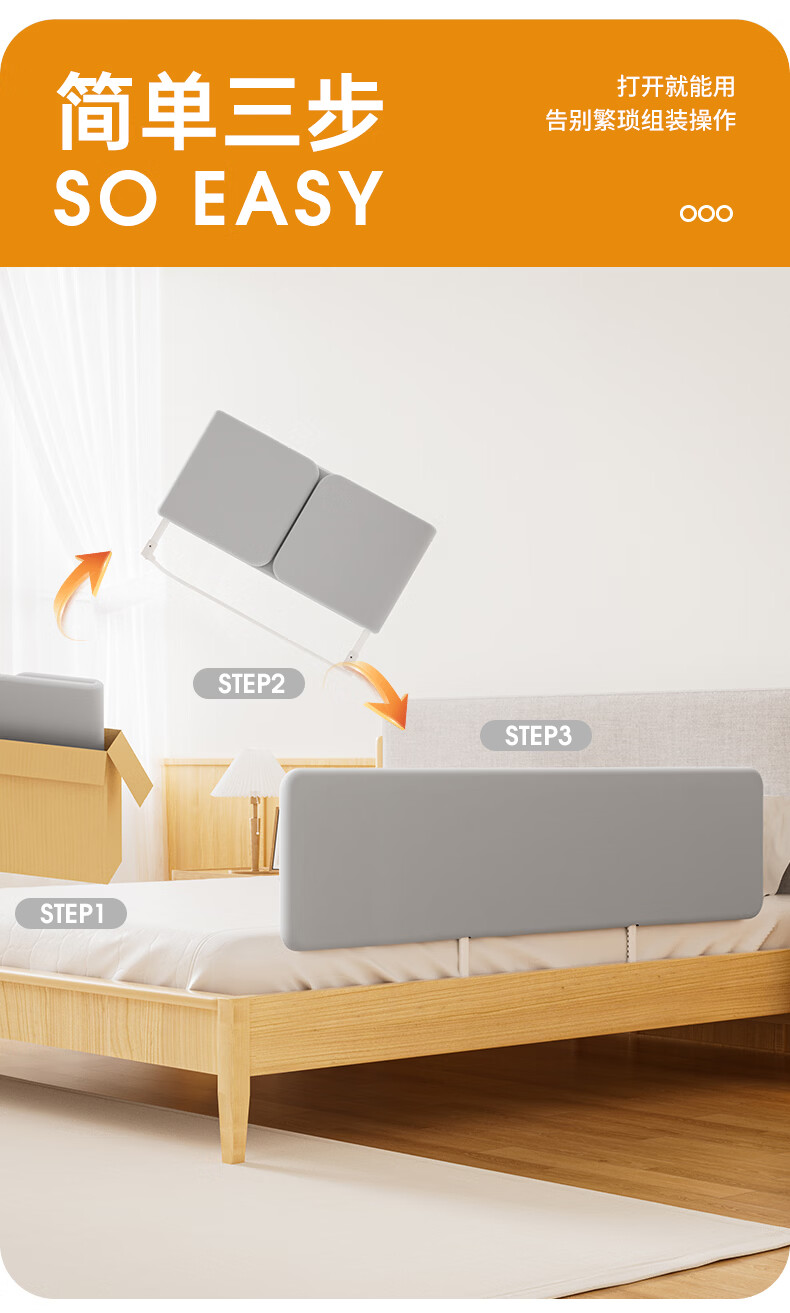 棒棒猪免安装床围栏宝宝防摔防护栏便携式可折叠旅行婴儿童挡板 1.2米