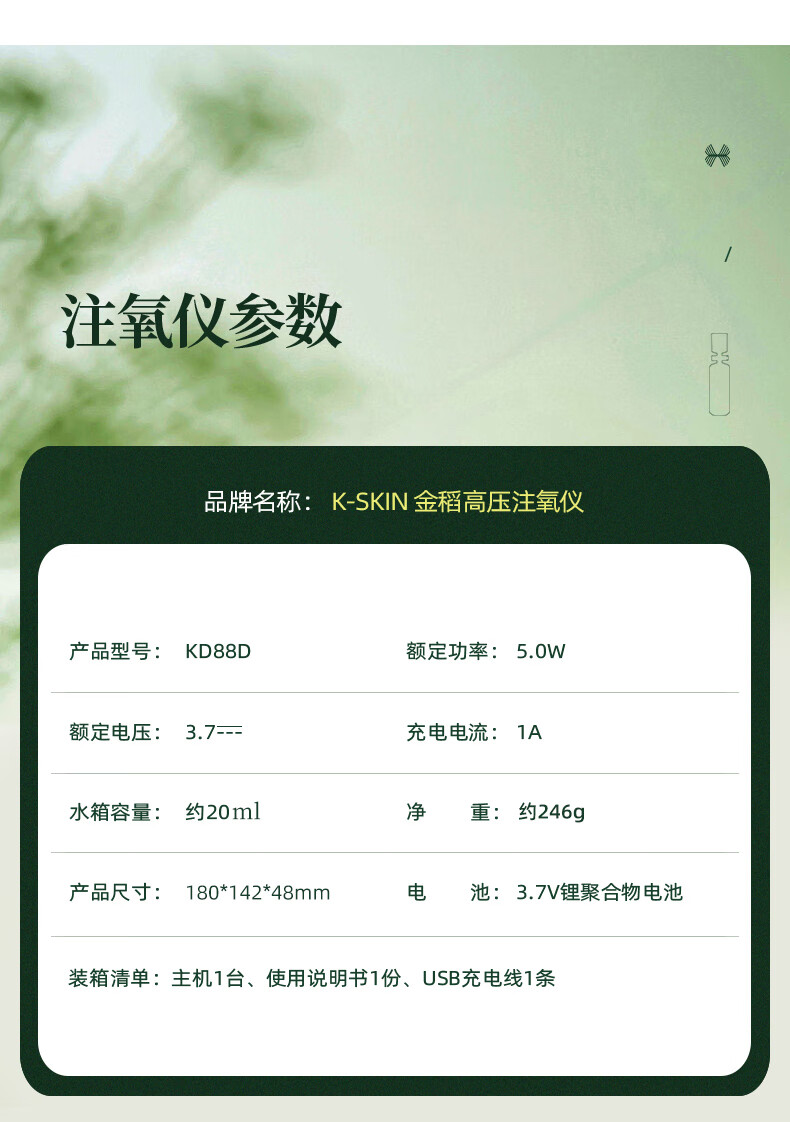 金稻注氧仪美容仪补水喷雾纳米喷雾器面部保湿便携手持水光补水蒸脸仪高压注氧仪便携KD88D母亲节礼物