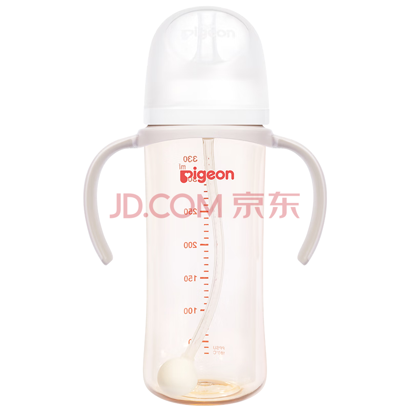 贝亲(Pigeon)自然离乳 PPSU重力球吸管双把手奶瓶 330m