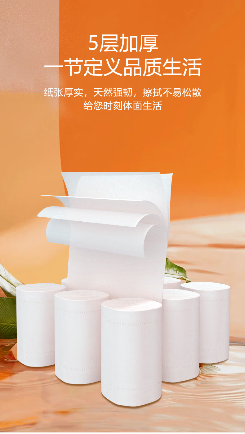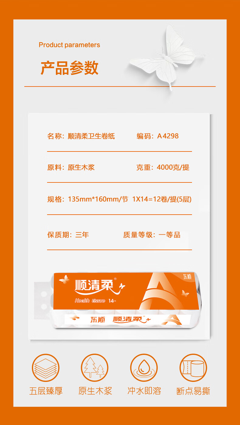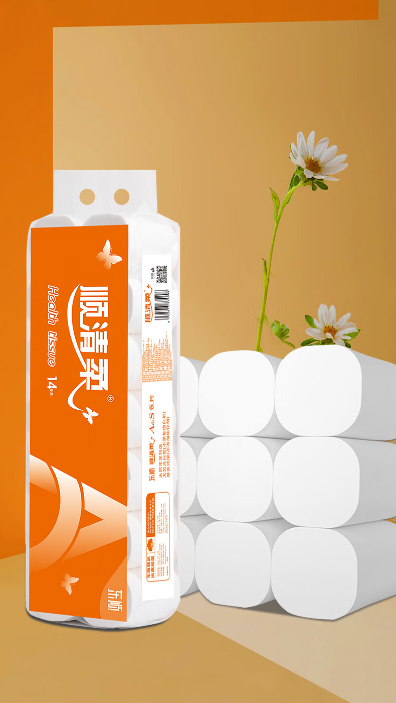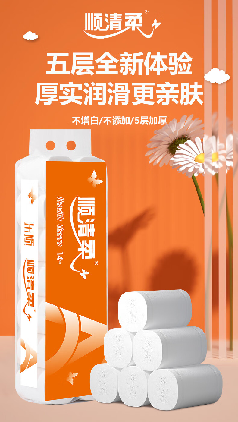 顺清柔无芯卷纸国际版5层285.7g*14卷 加厚长条卫生纸 4公斤/提
