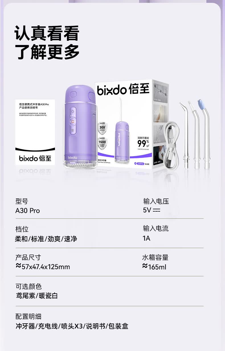 倍至(bixdo)冲牙器牙齿冲洗器 便携专业固定正畸洗牙器 胶囊三代 生日礼物男生女生实用