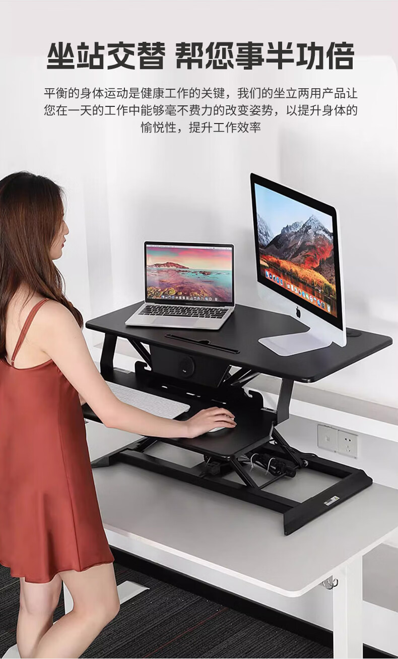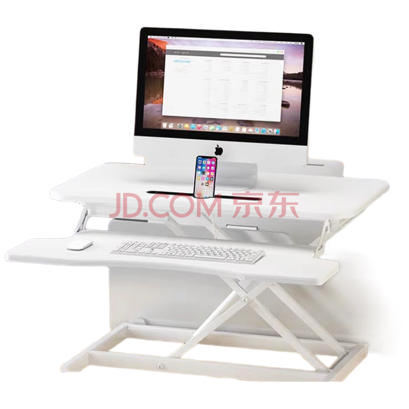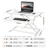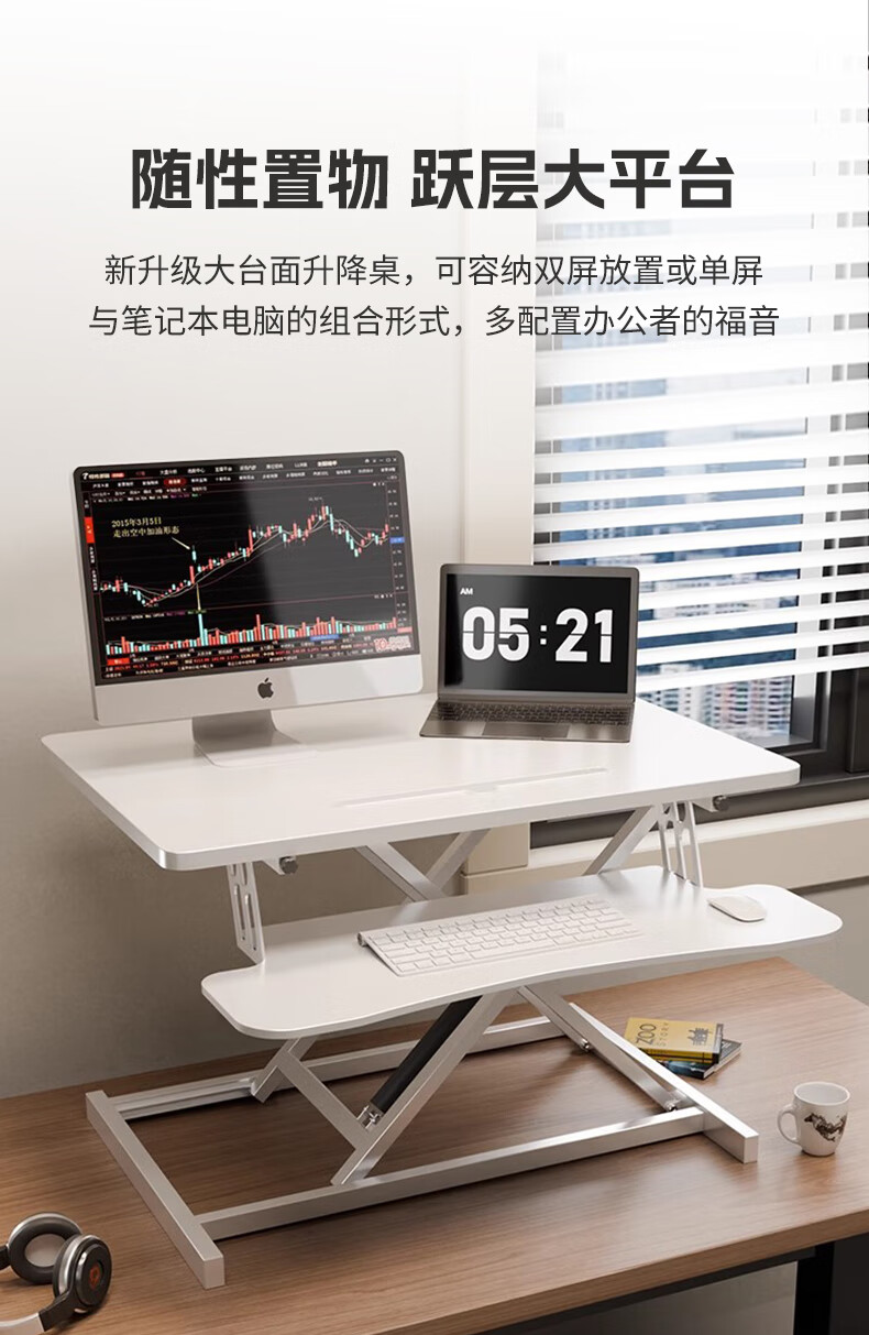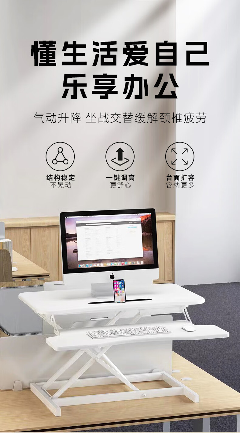 米瑞思(mryc)升降电脑桌支架笔记本升降工作台显示器增高升降台站立式办公书桌可折叠气动无级升降白色双层80cm