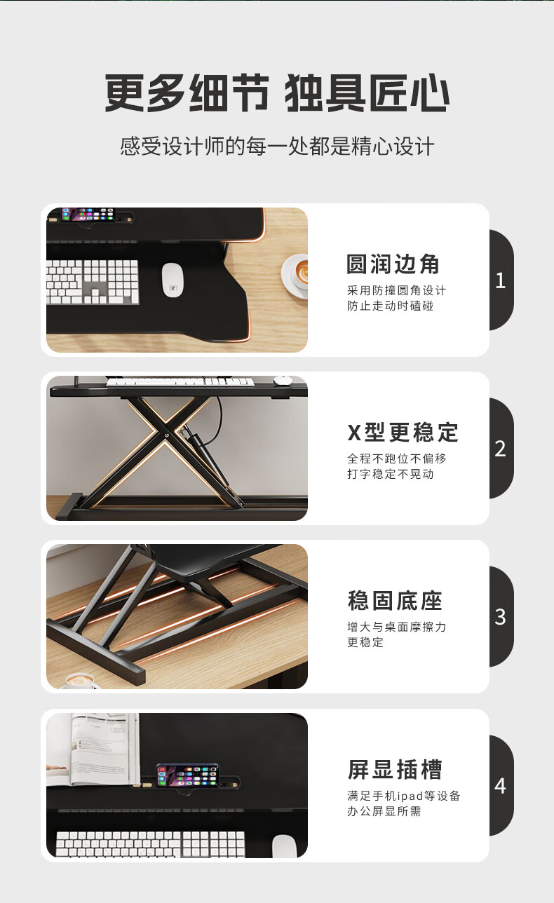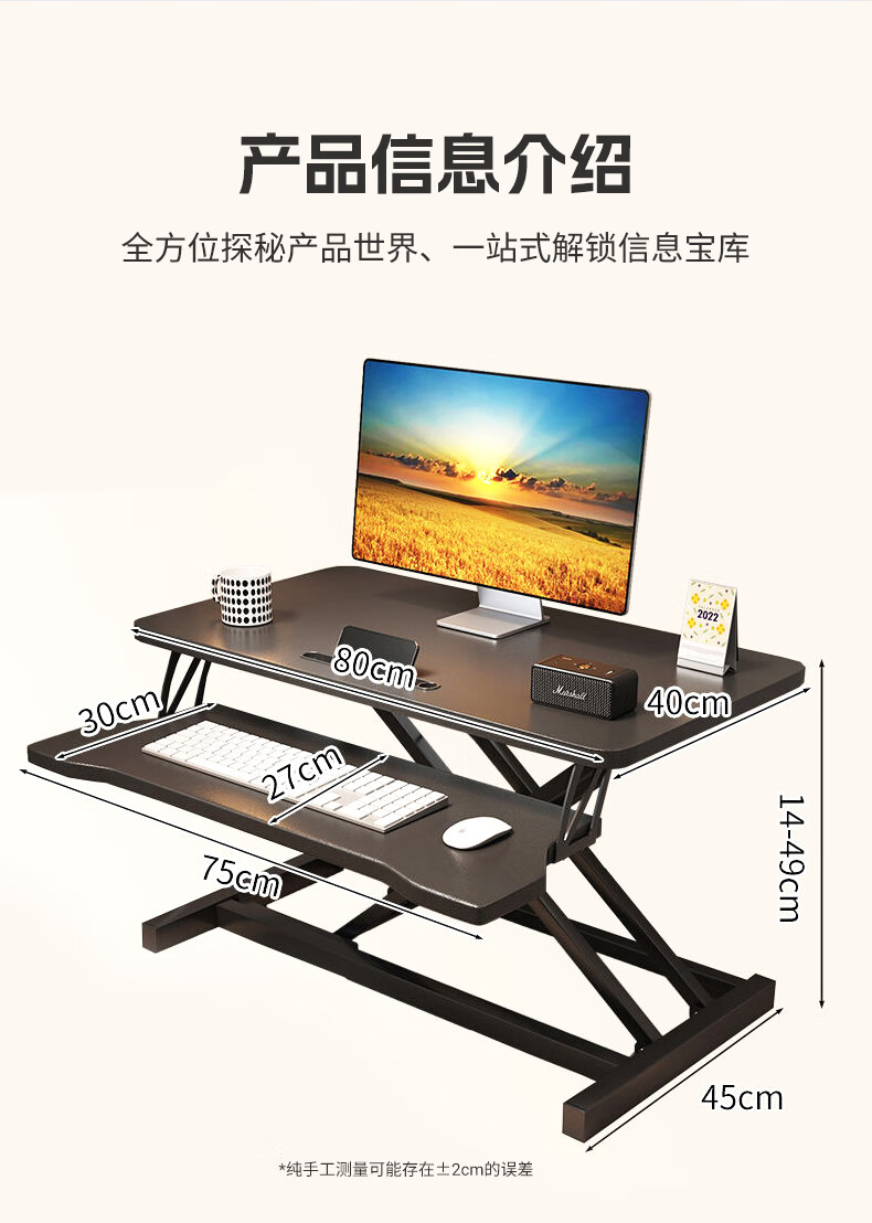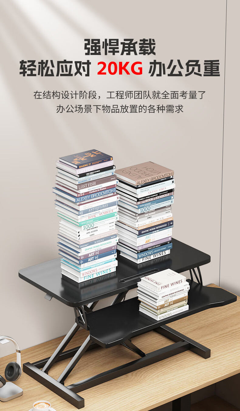 米瑞思(mryc)升降电脑桌支架笔记本升降工作台显示器增高升降台站立式办公书桌可折叠气动无级升降白色双层80cm