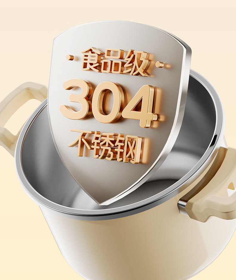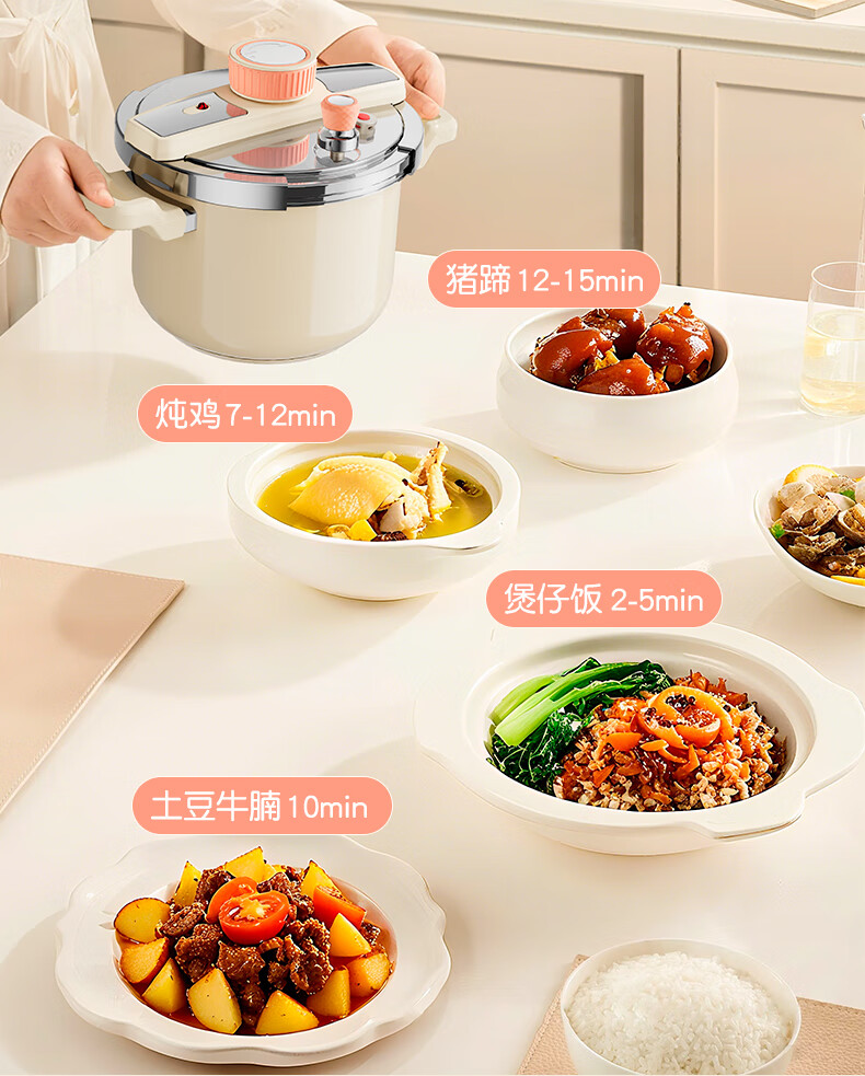 美的(Midea)浓香电压力锅健康0涂层钢胆高压锅5L双胆家