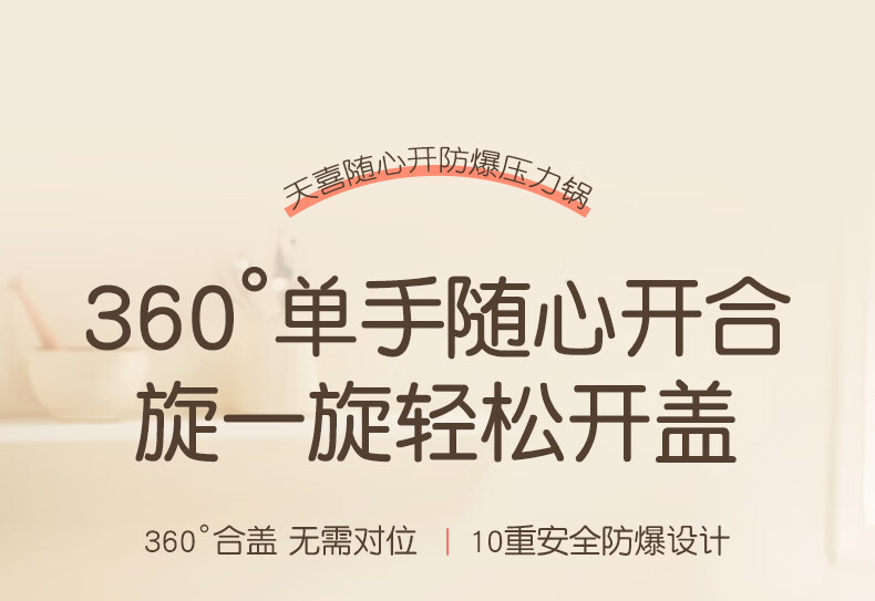 天喜防爆高压锅6L 家用304不锈钢压力锅单手开合燃气电通用/3-5人适合