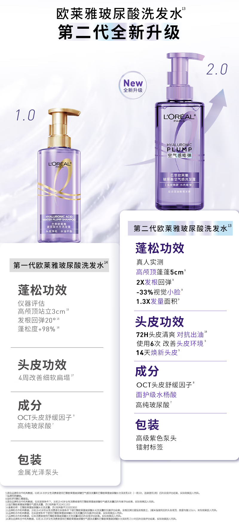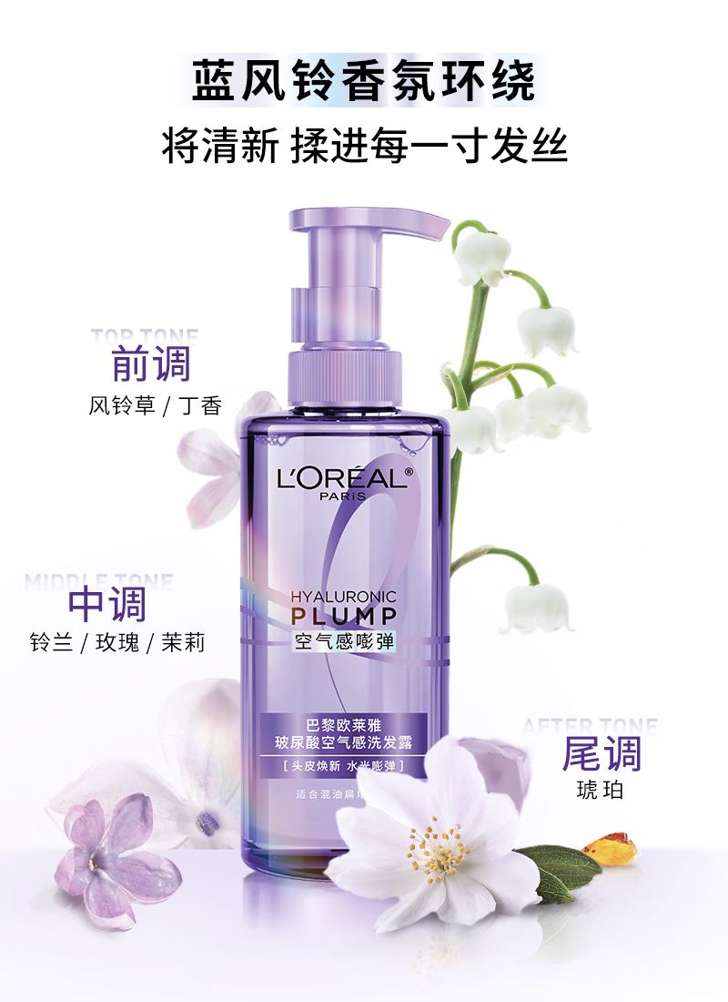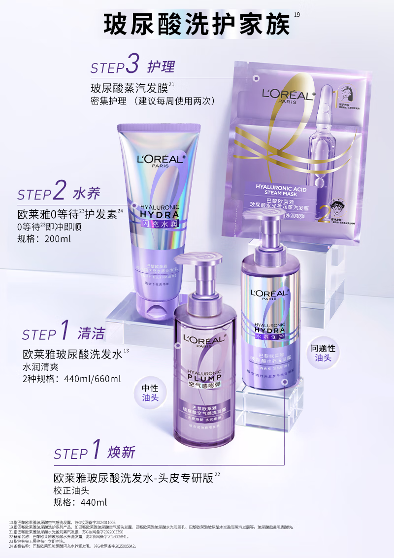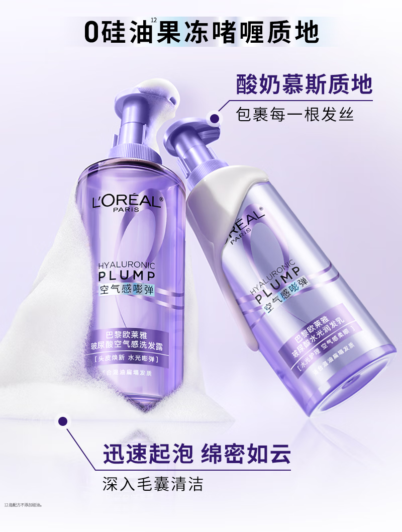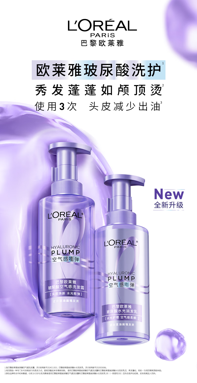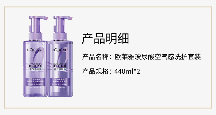 欧莱雅玻尿酸洗发水护发素控油蓬松洗发露440ml*2【热门商品】