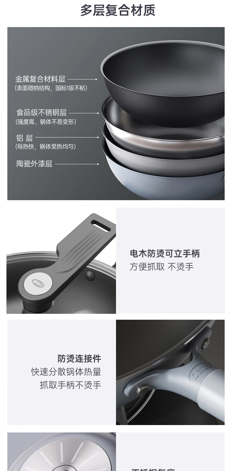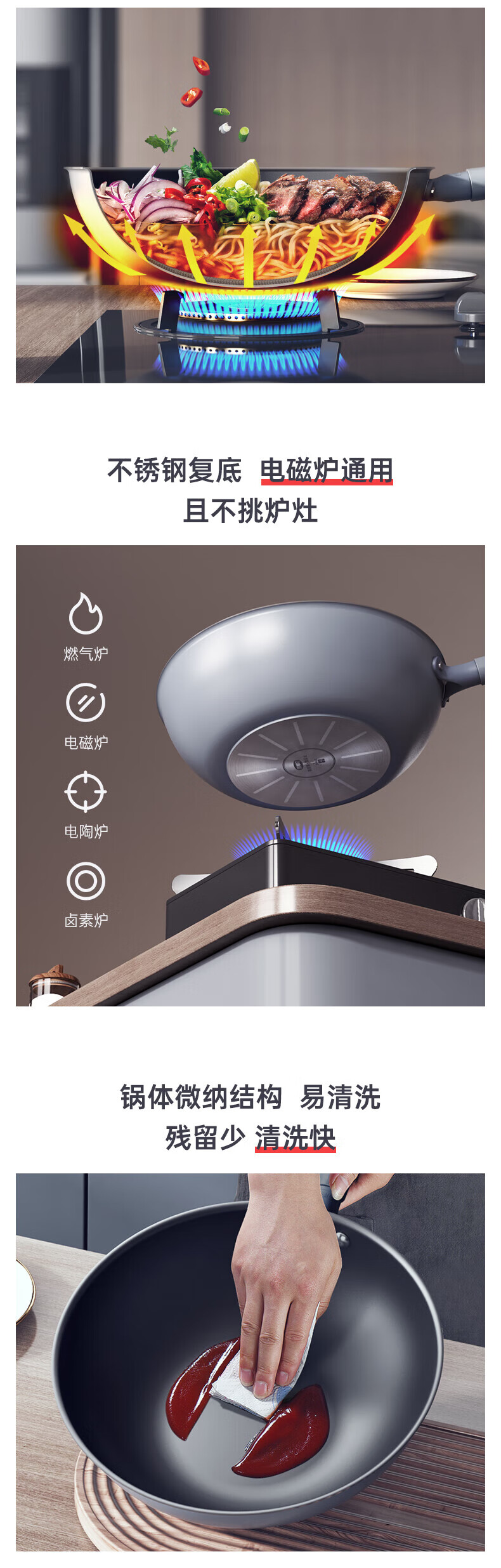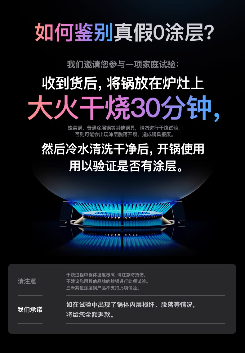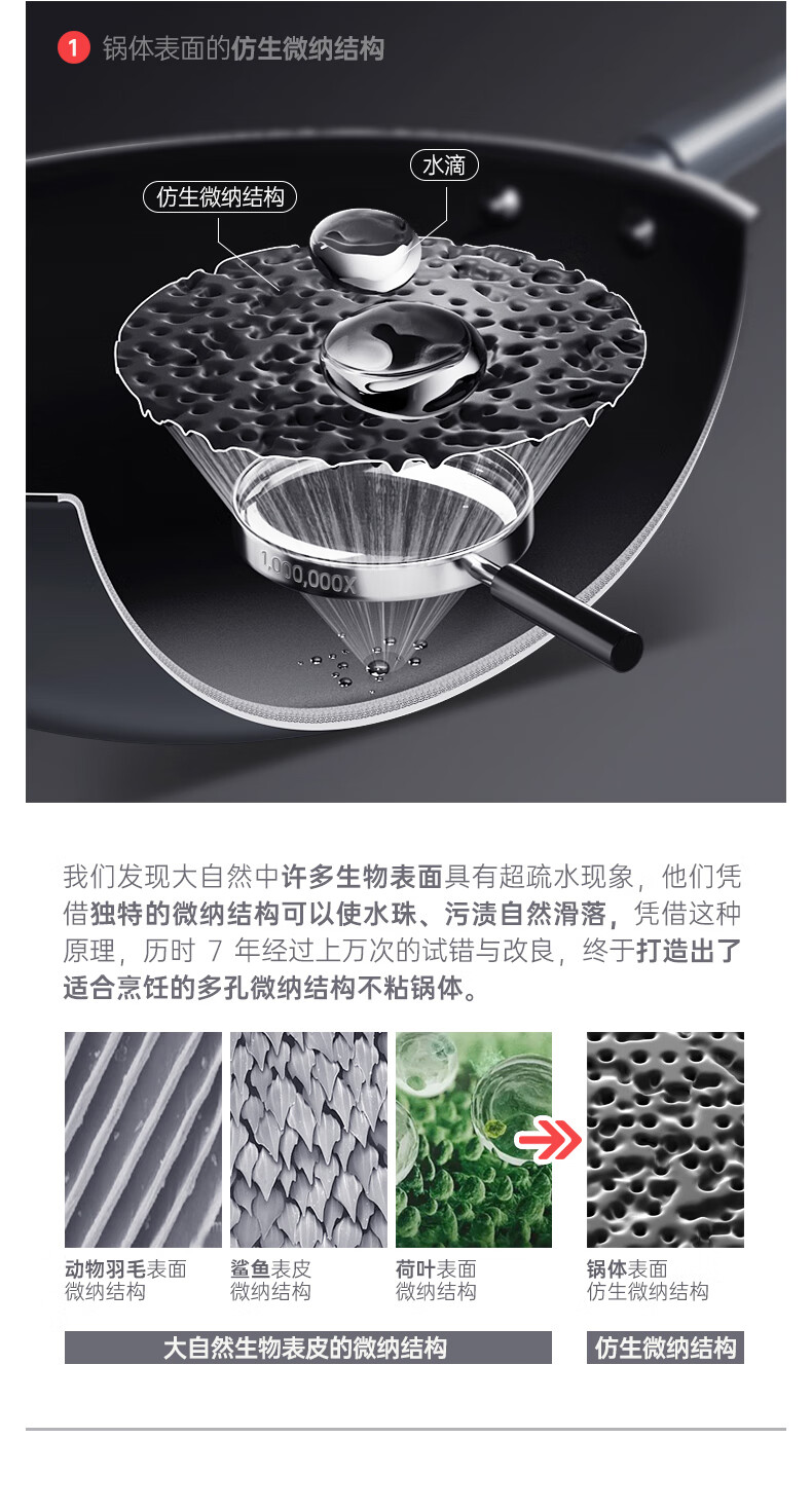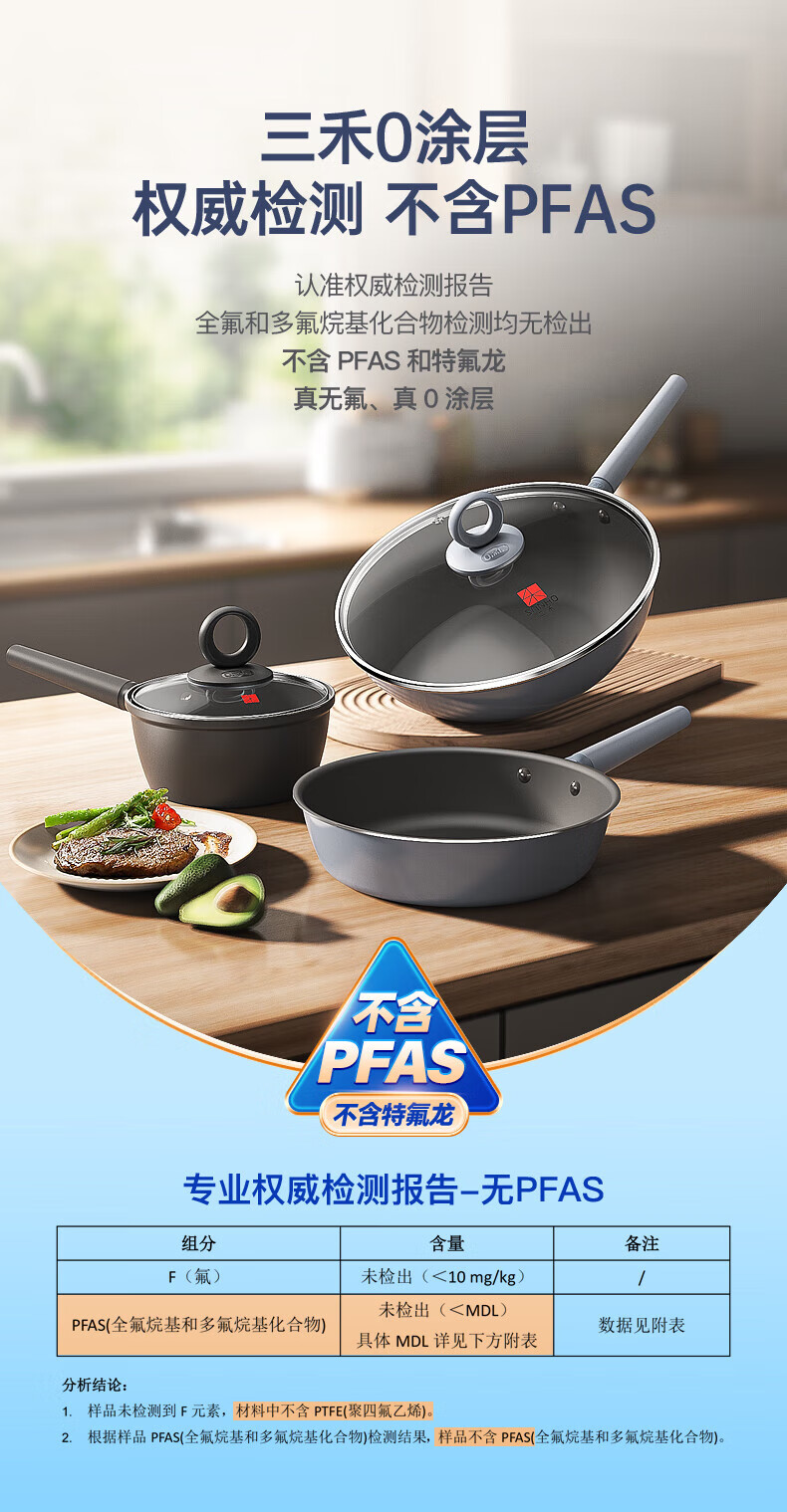 三禾微纳无涂层不粘炒锅可立盖炒菜锅无油烟含钛锅具32cm天穹黑配钢铲