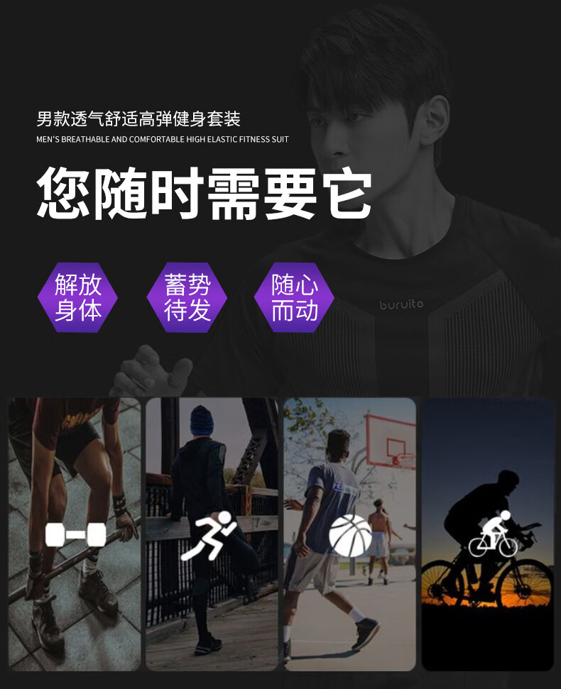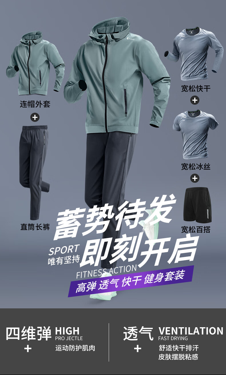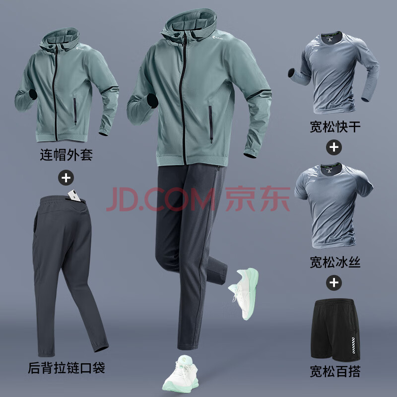 步锐特(BURUITE)跑步运动套装男宽松晨跑速干田径骑行羽毛球训练服健身秋季五件套