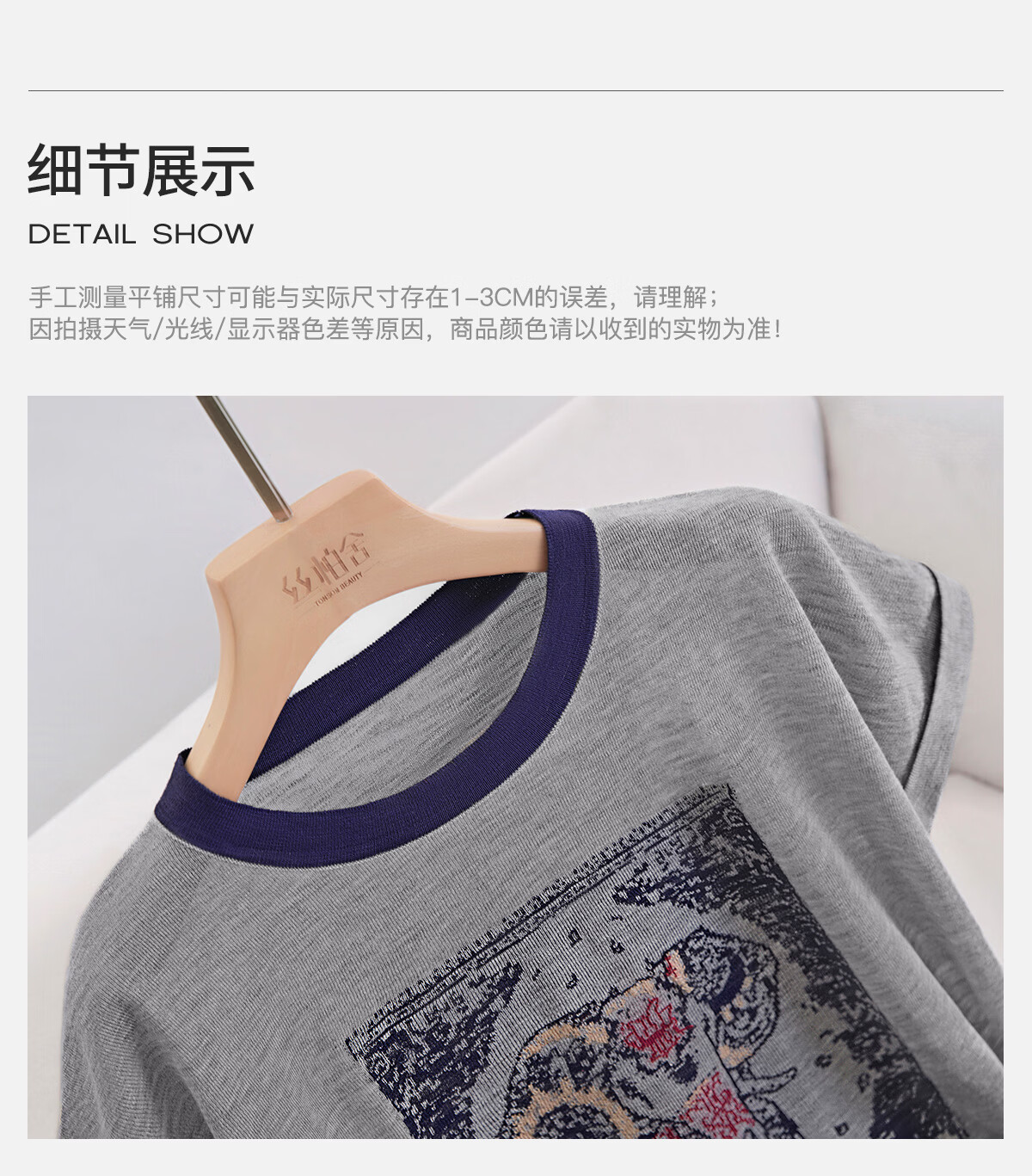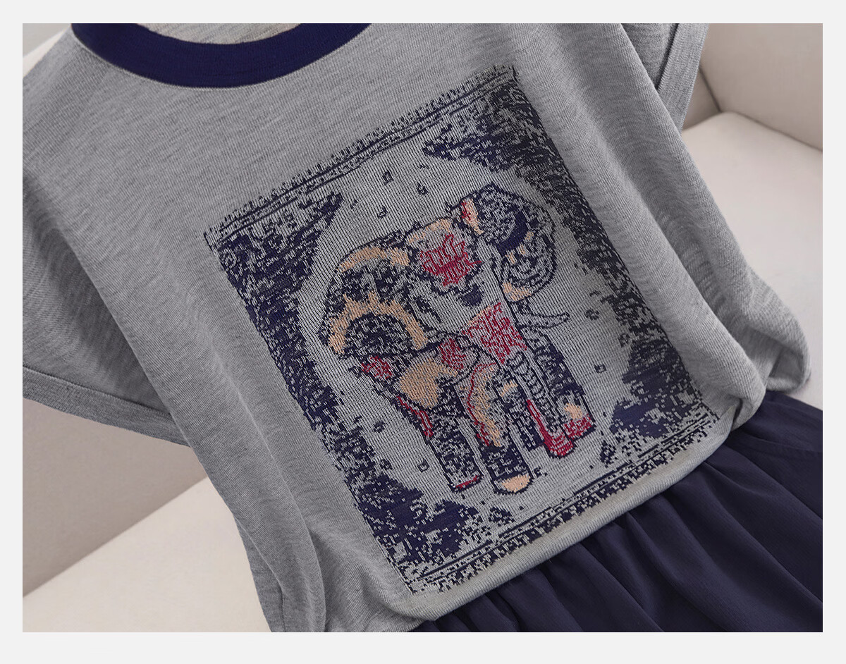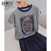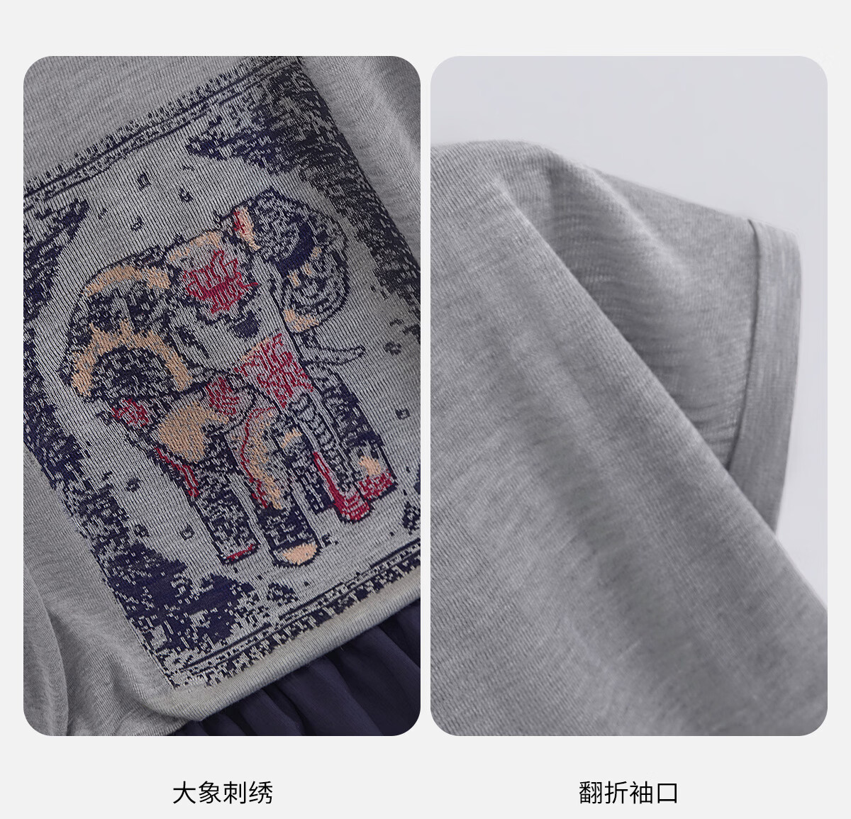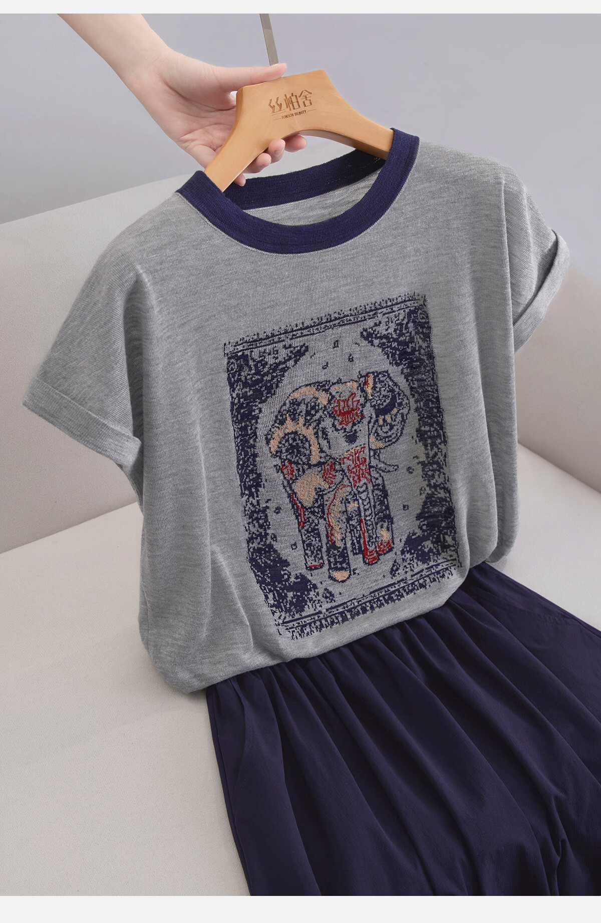 丝柏舍圆领短袖针织衫女2026春装新款时尚简约大象刺绣套