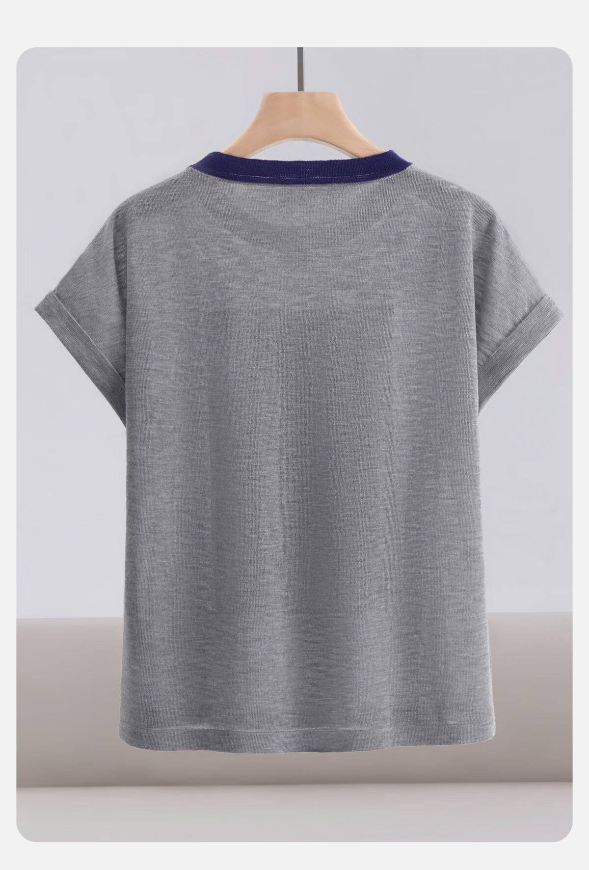 丝柏舍圆领短袖针织衫女2026春装新款时尚简约大象刺绣套头上衣