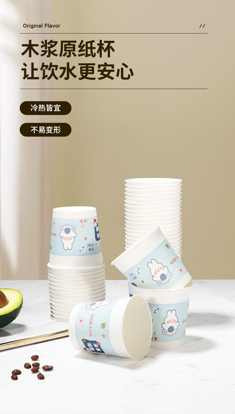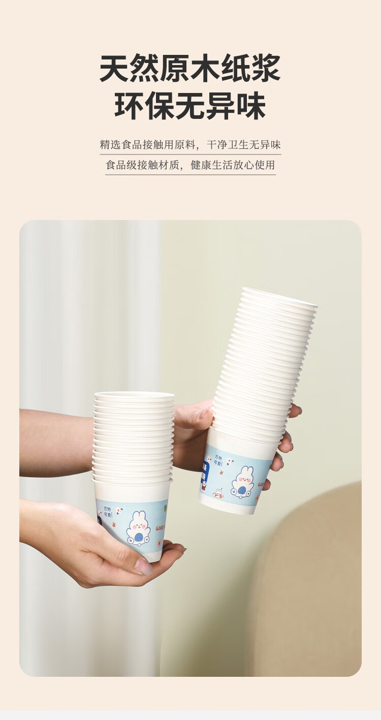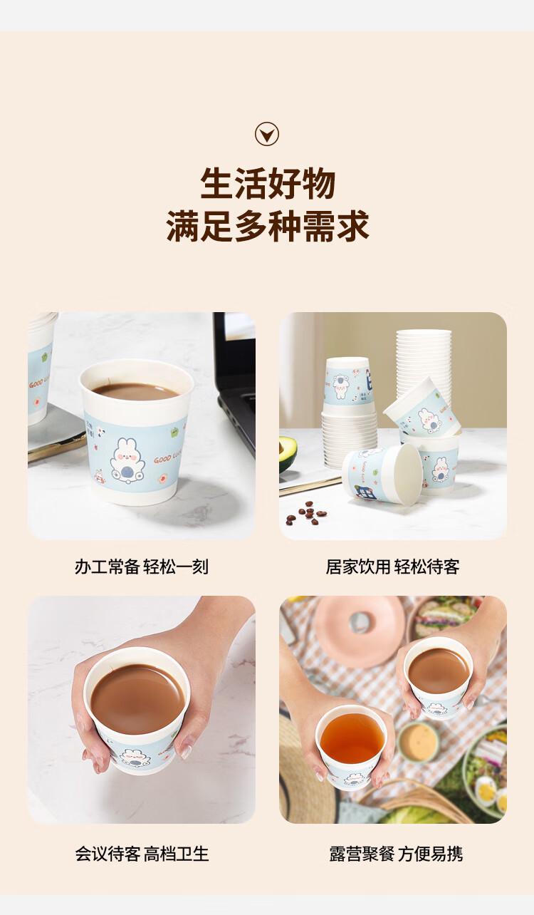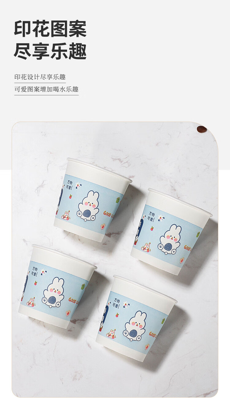 加厚木浆纸杯萌兔蓝 180ml*100只