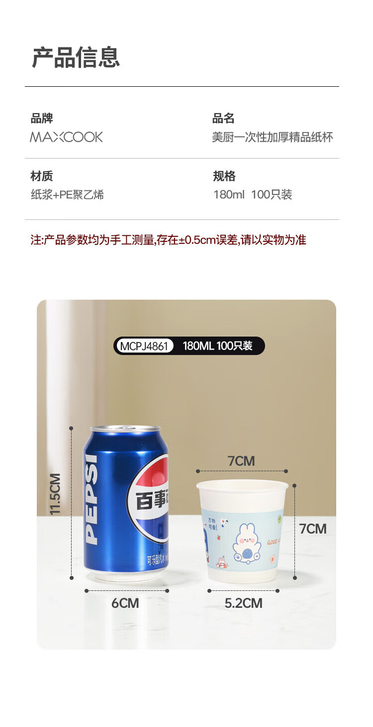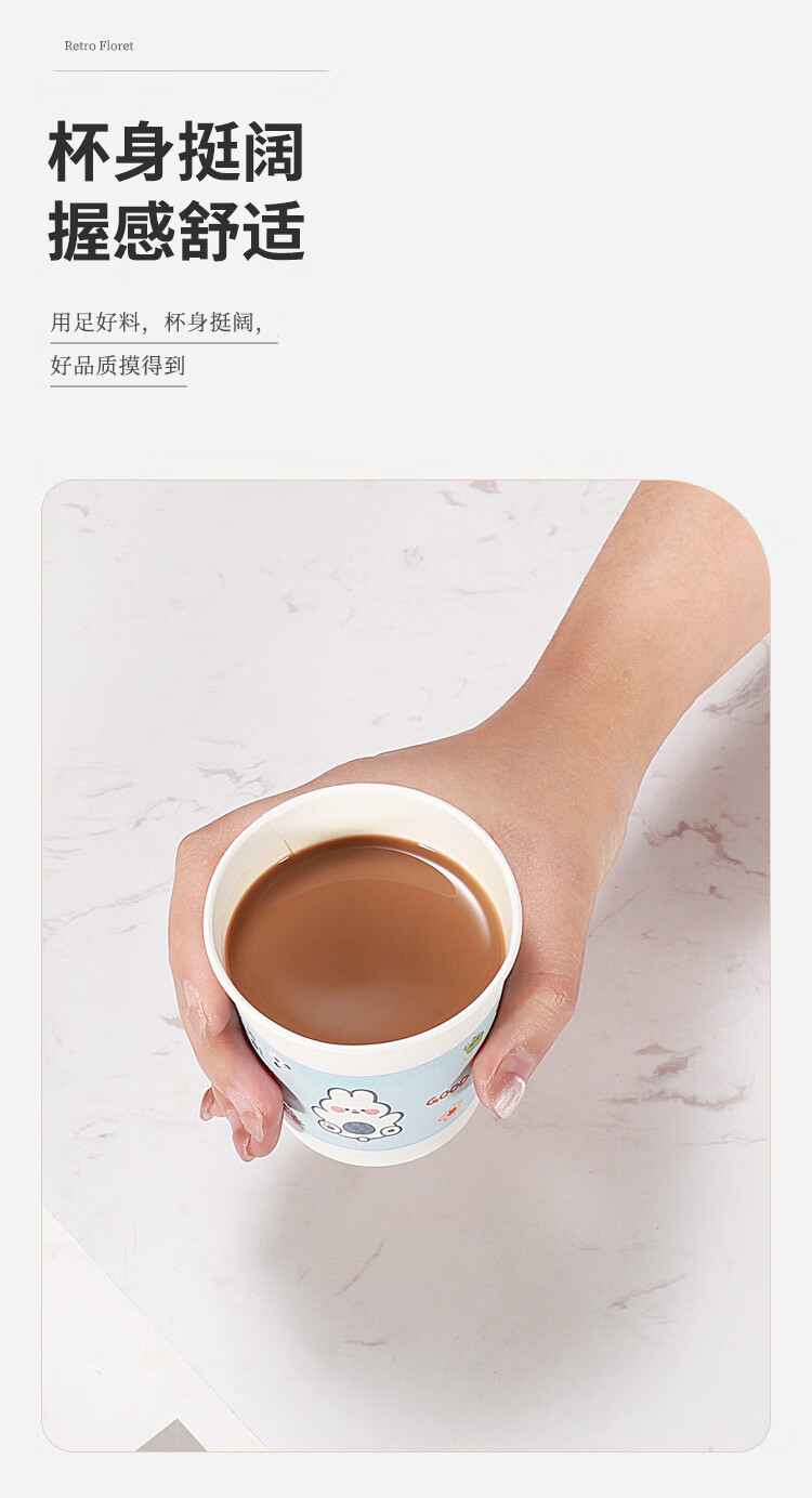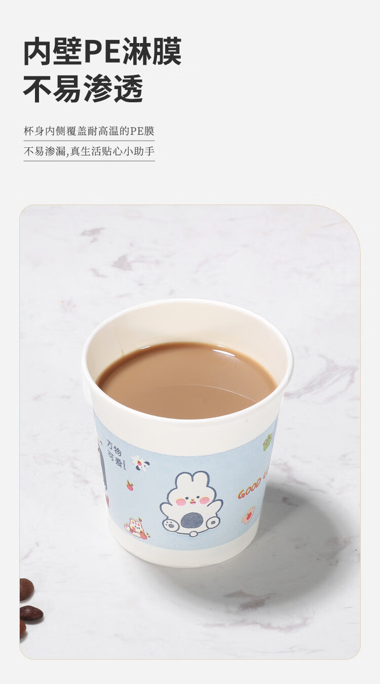 美厨(MAXCOOK)纸杯一次性杯子咖啡杯 卡通办公家用奶茶水杯180ml 100只MCPJ4861