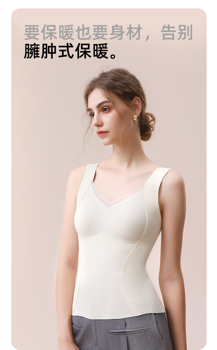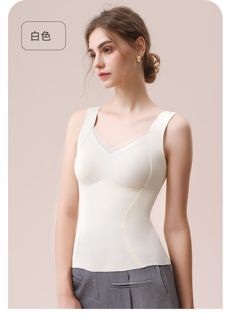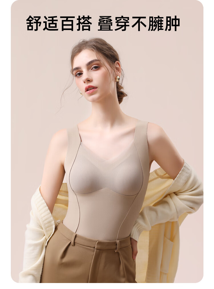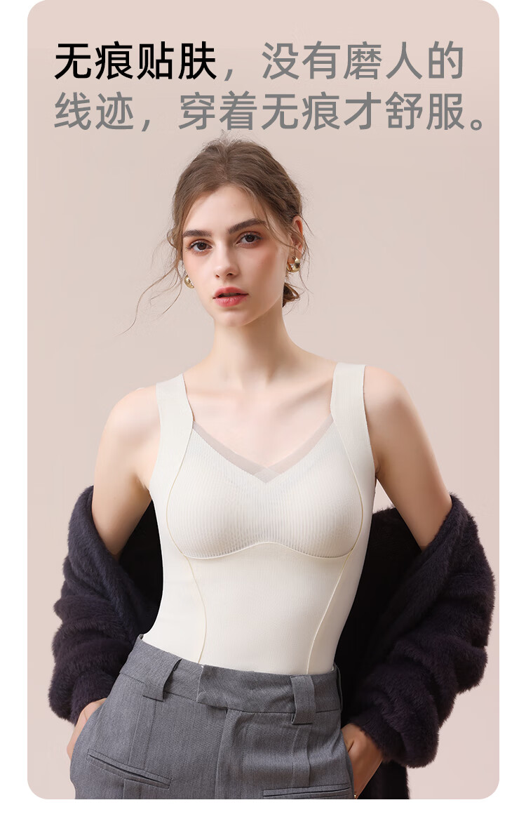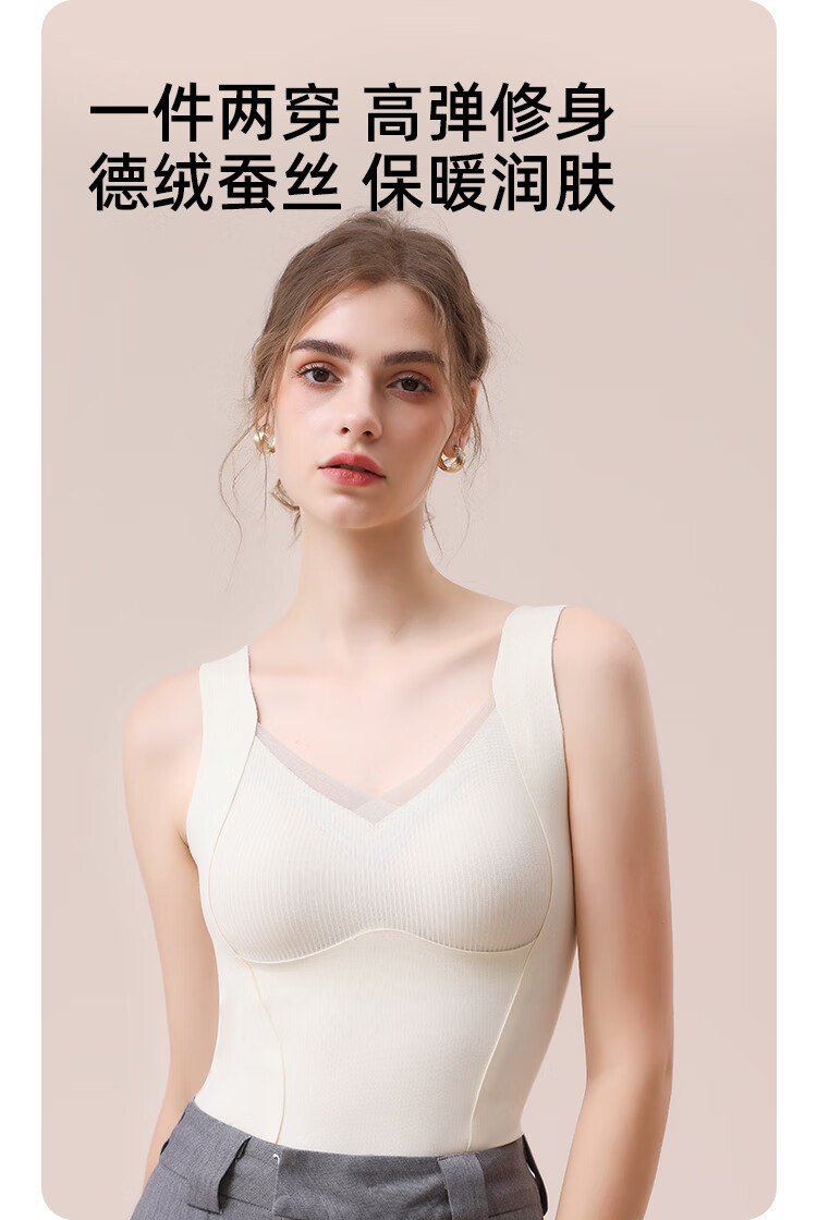 都市丽人德绒带胸垫保暖背心女含羊毛蚕丝秋冬免穿文胸打