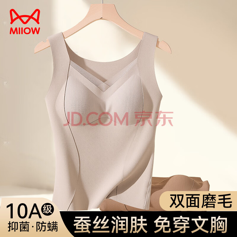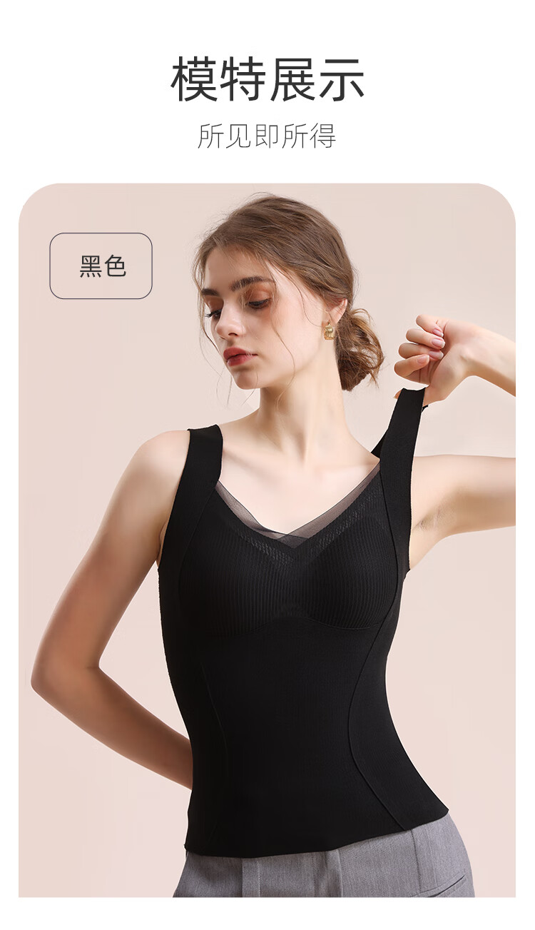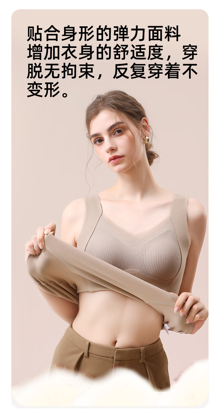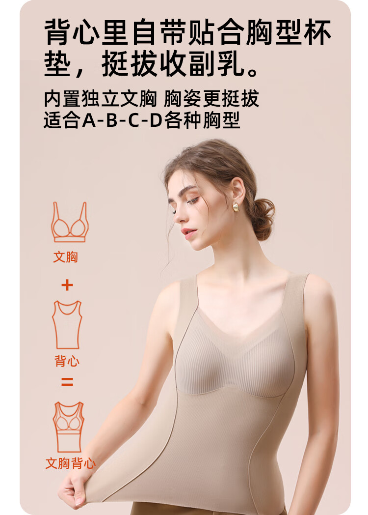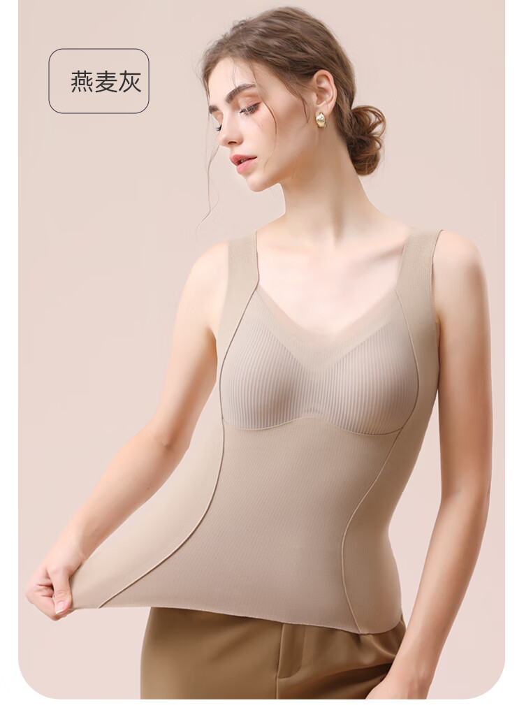 都市丽人德绒带胸垫保暖背心女含羊毛蚕丝秋冬免穿文胸打