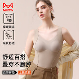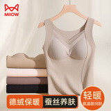 猫人女士保暖背心女带胸垫蚕丝内衣罗纹蕾丝秋冬吊带免穿文胸灰色XL