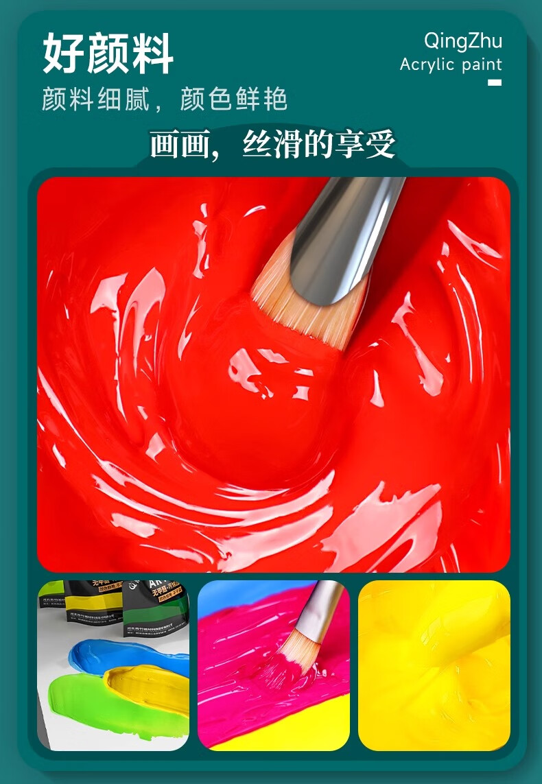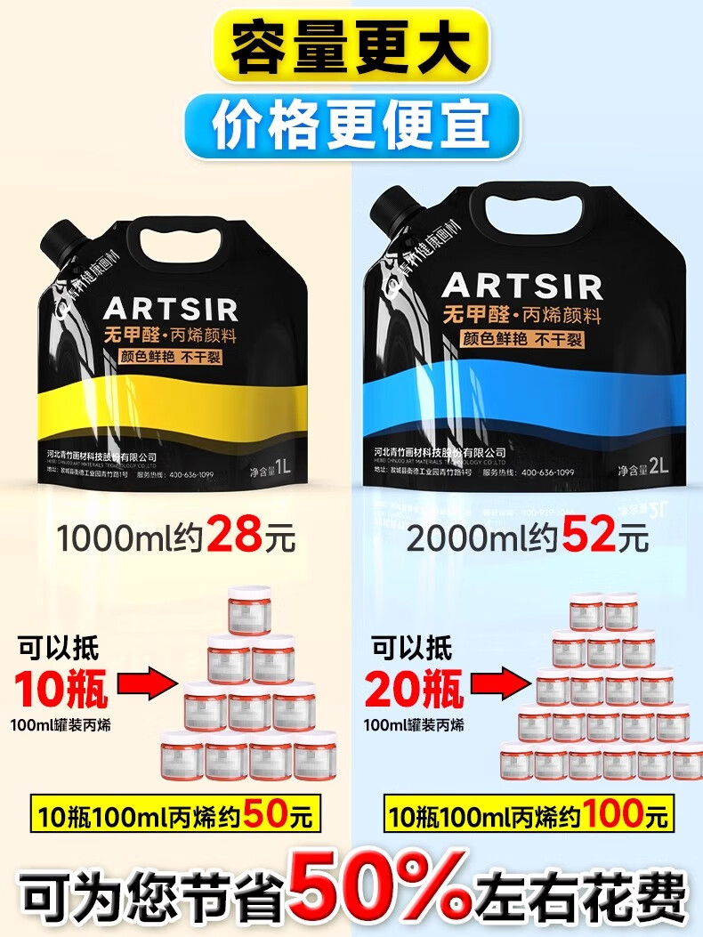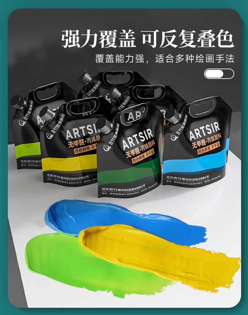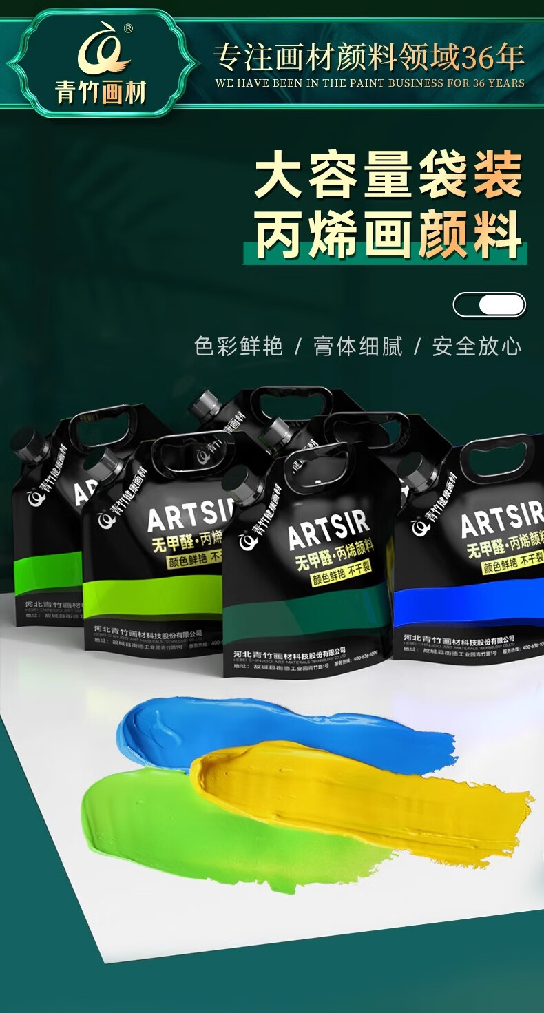 青竹画材(CHINJOO)丙烯颜料中黄1L大袋丙烯美术生室内外防水防晒不掉色白色金色diy材料染美术写生美育工具