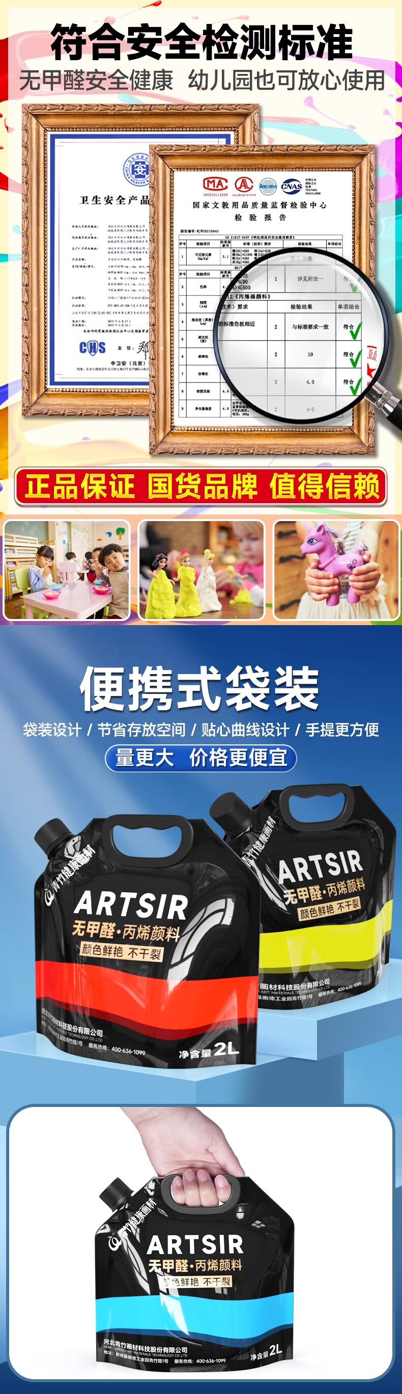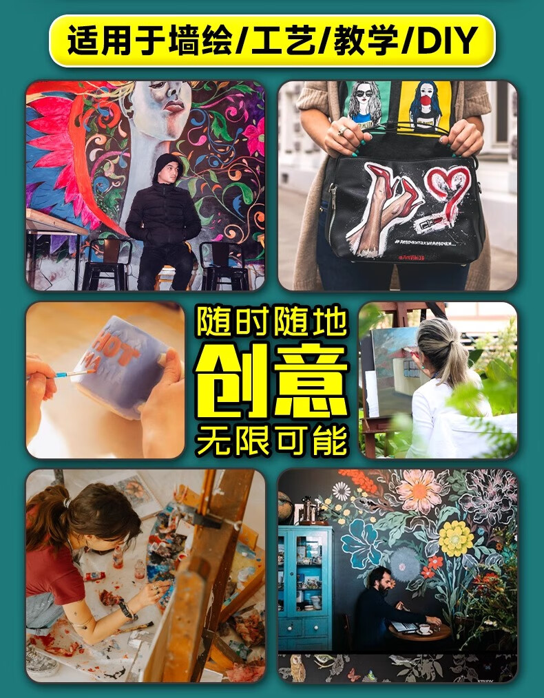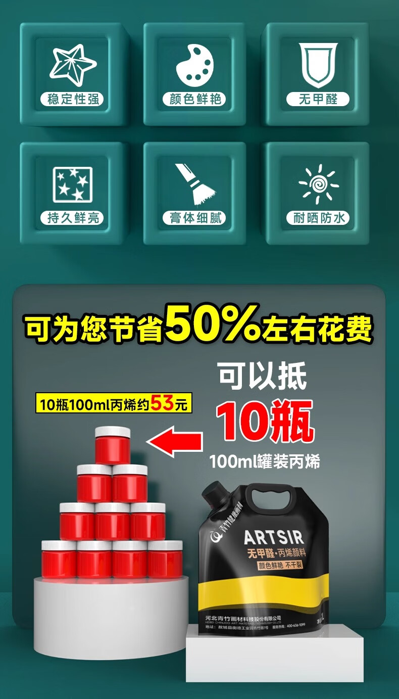 青竹画材(CHINJOO)丙烯颜料中黄1L大袋丙烯美术生室内外防水防晒不掉色白色金色diy材料染美术写生美育工具