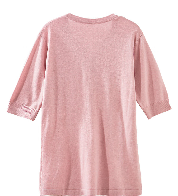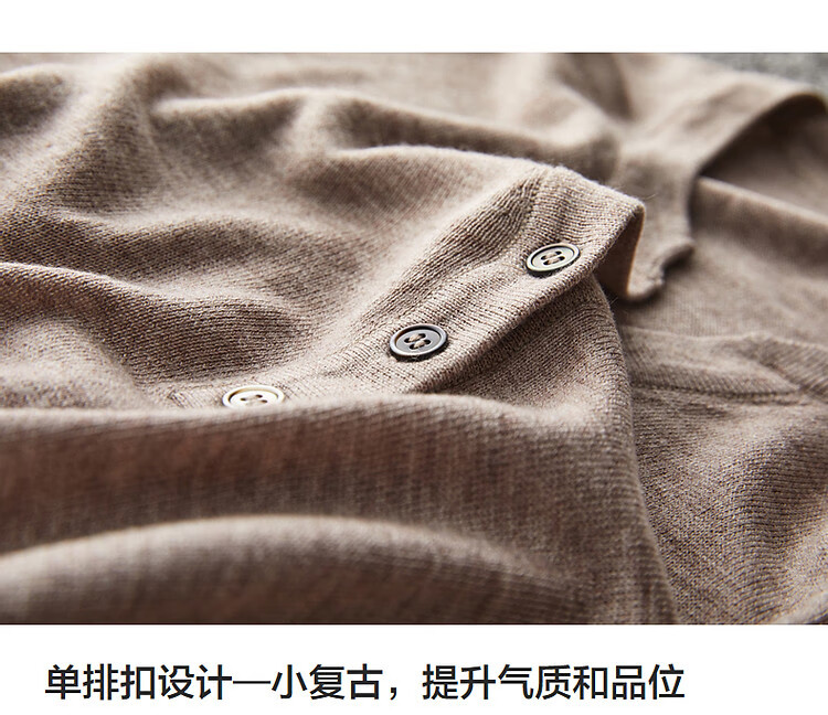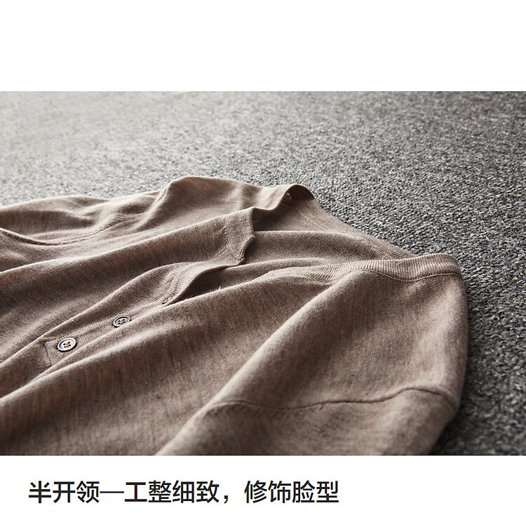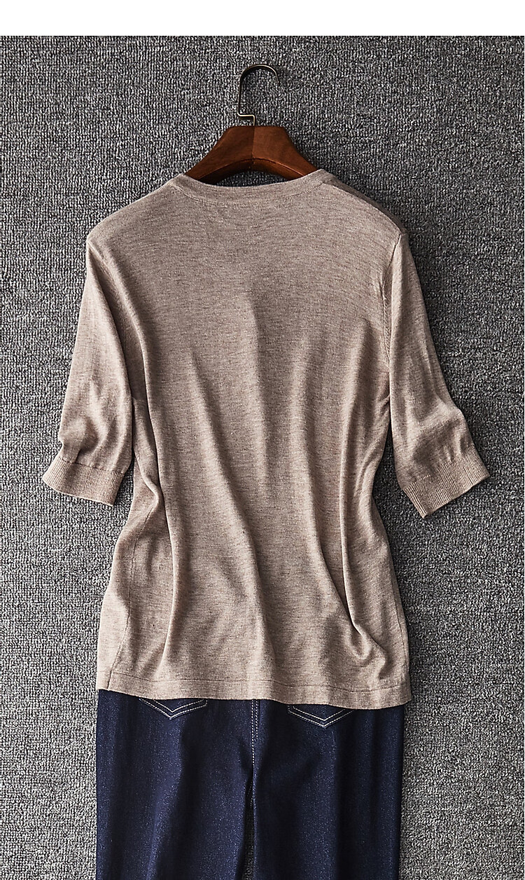 德玛纳含绵羊毛五分袖线衫春秋半开领中袖单排扣针织衫女