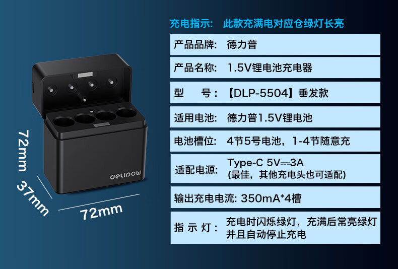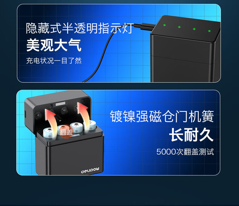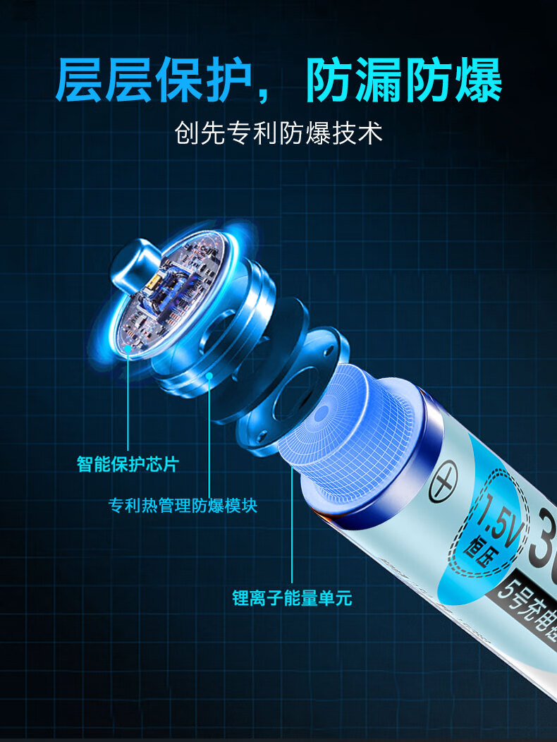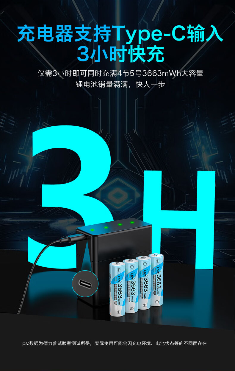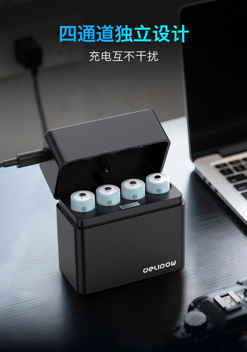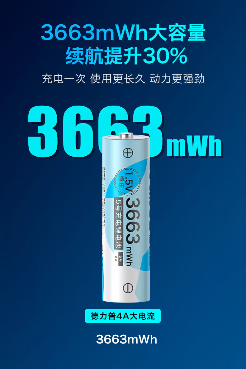 德力普(Delipow)5号充电锂电池8粒3663mWh充电仓套装AA五号1.5V快充适用话筒麦克风/智能门锁/游戏手柄/相机闪光灯