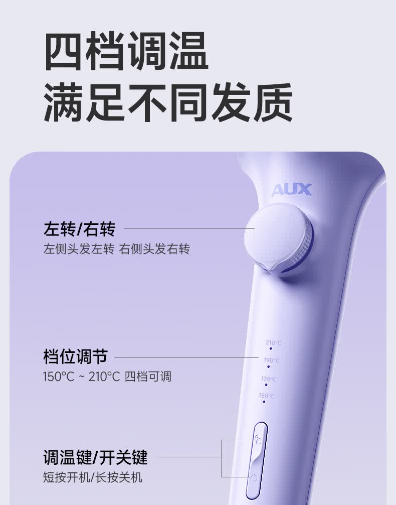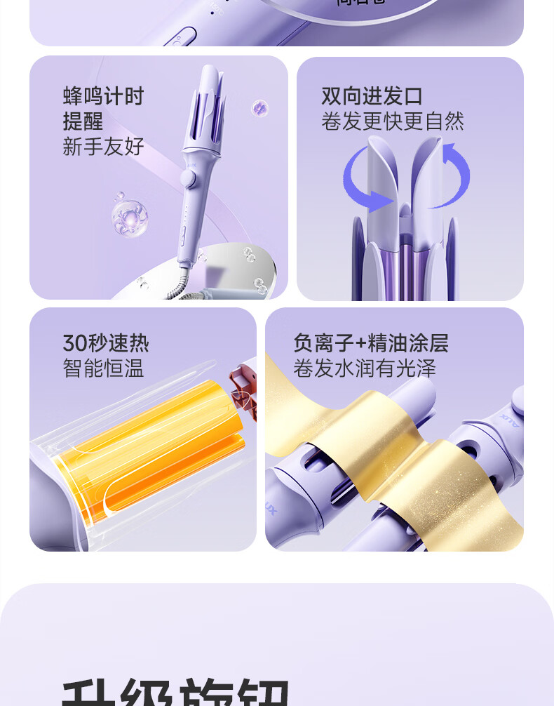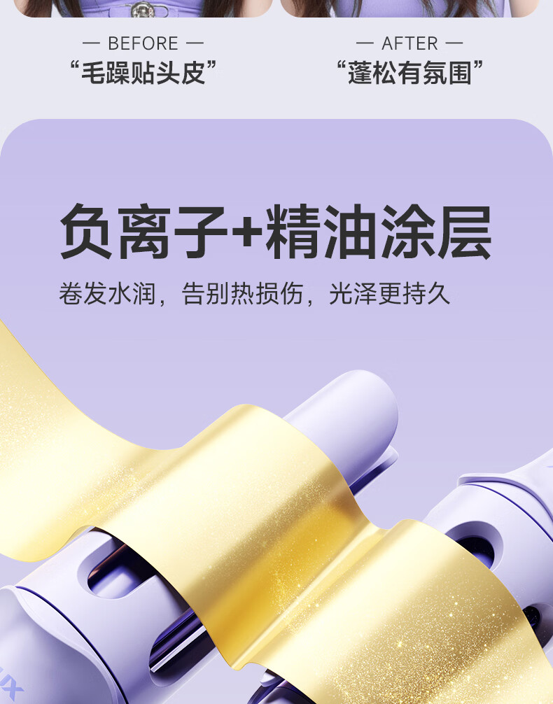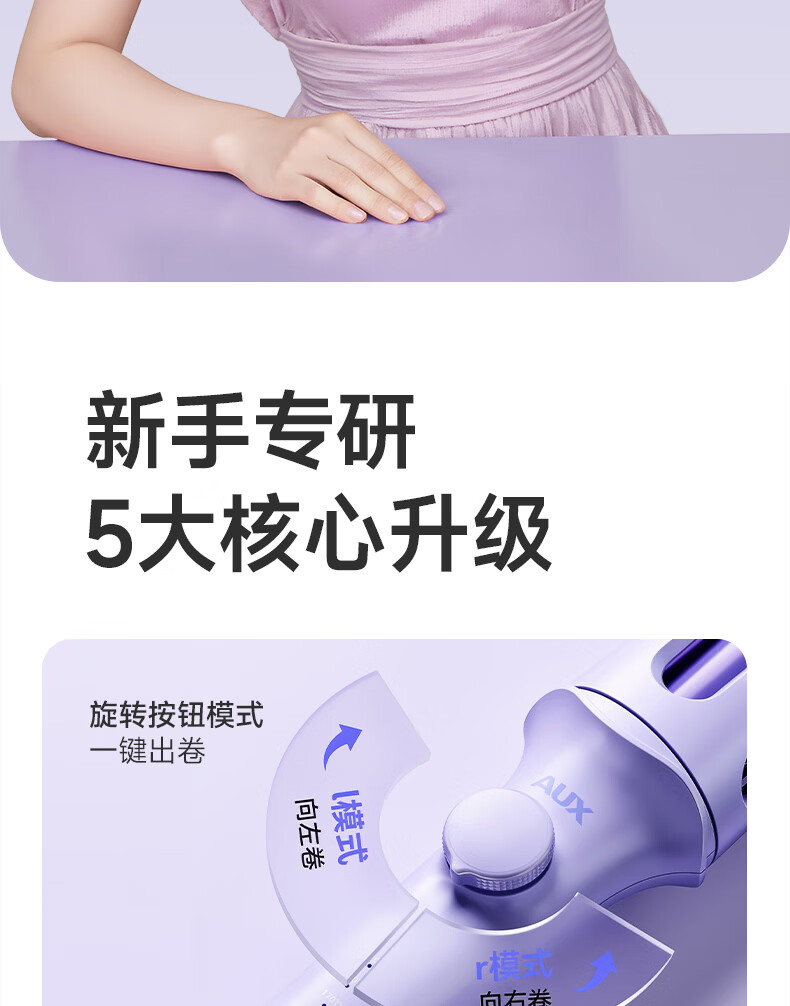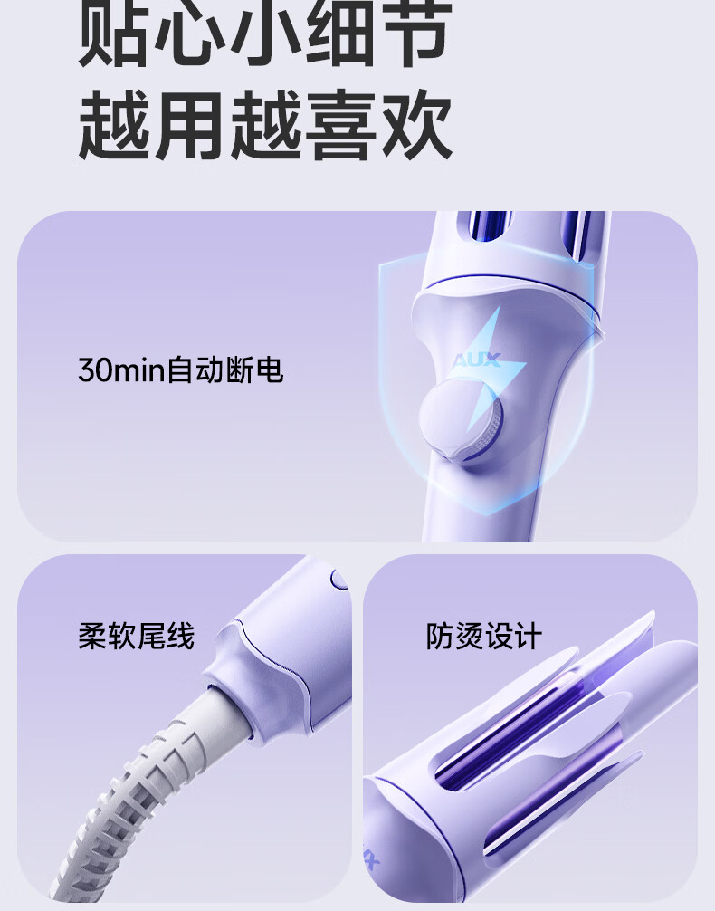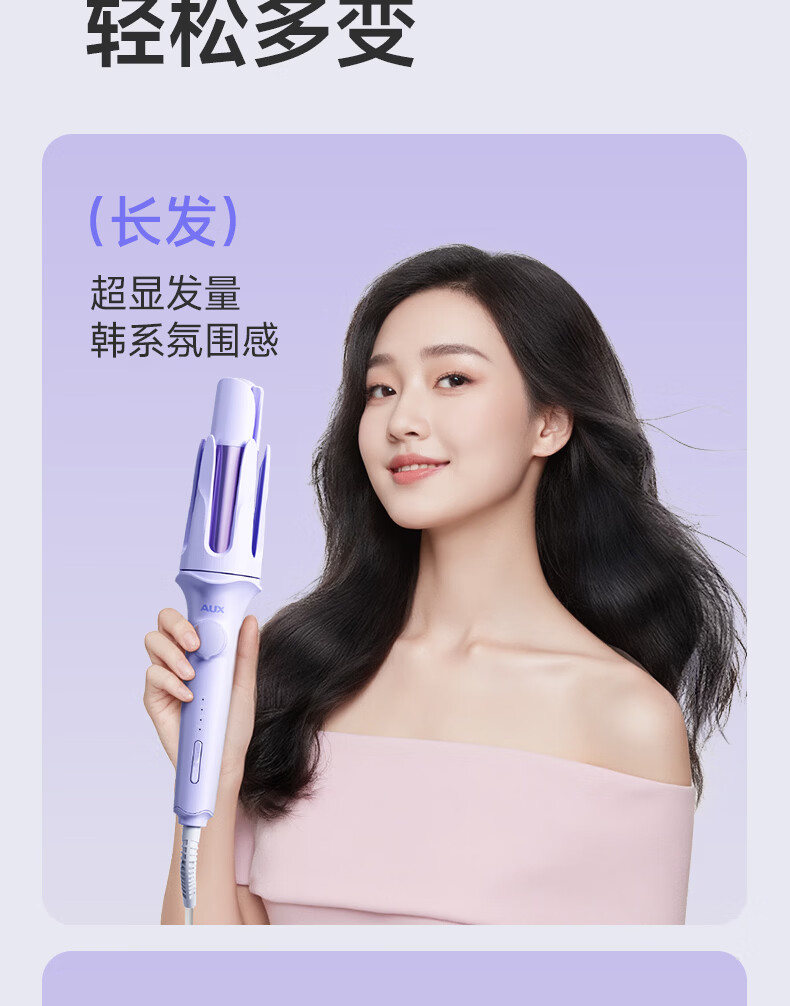 奥克斯(AUX)全自动卷发棒36mm负离子护发不伤发电动卷发神器懒人便携女士大波浪礼物