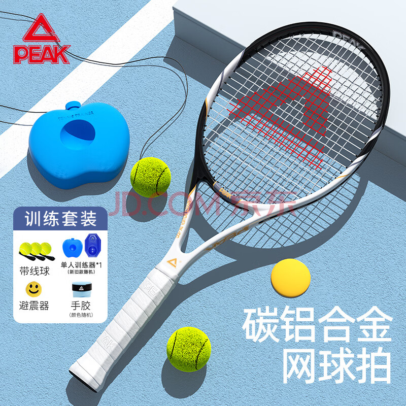 匹克网球拍碳铝合金回弹训练器专业带绳回弹初学者单拍 黑白