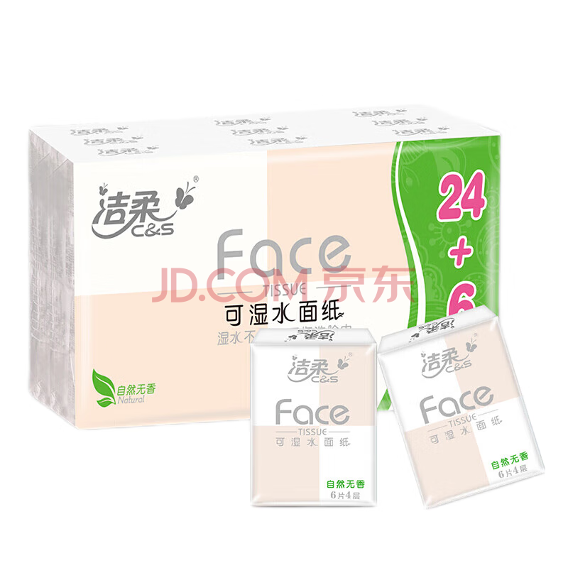 洁柔手帕纸 粉Face4层6片*30包纸巾小包 超迷你便携 可湿水德国工艺