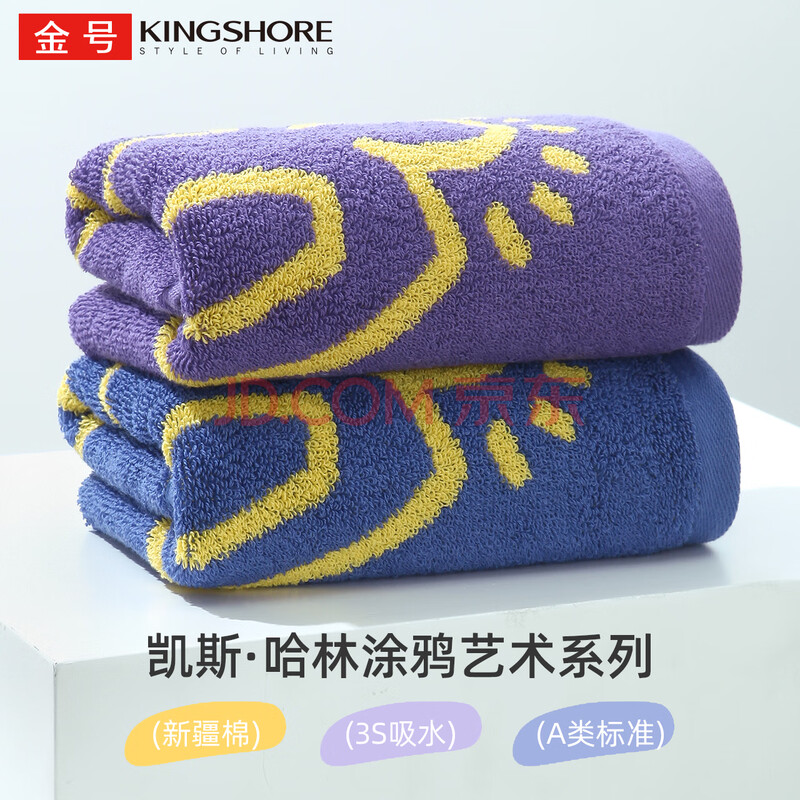 金号凯斯哈林联名 A类毛巾纯棉100%纯棉洗脸毛巾洗澡毛巾吸水2条
