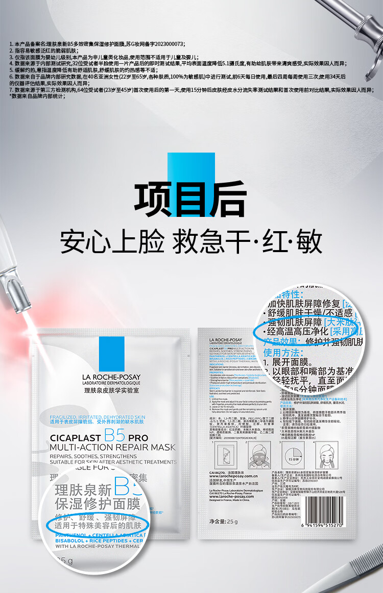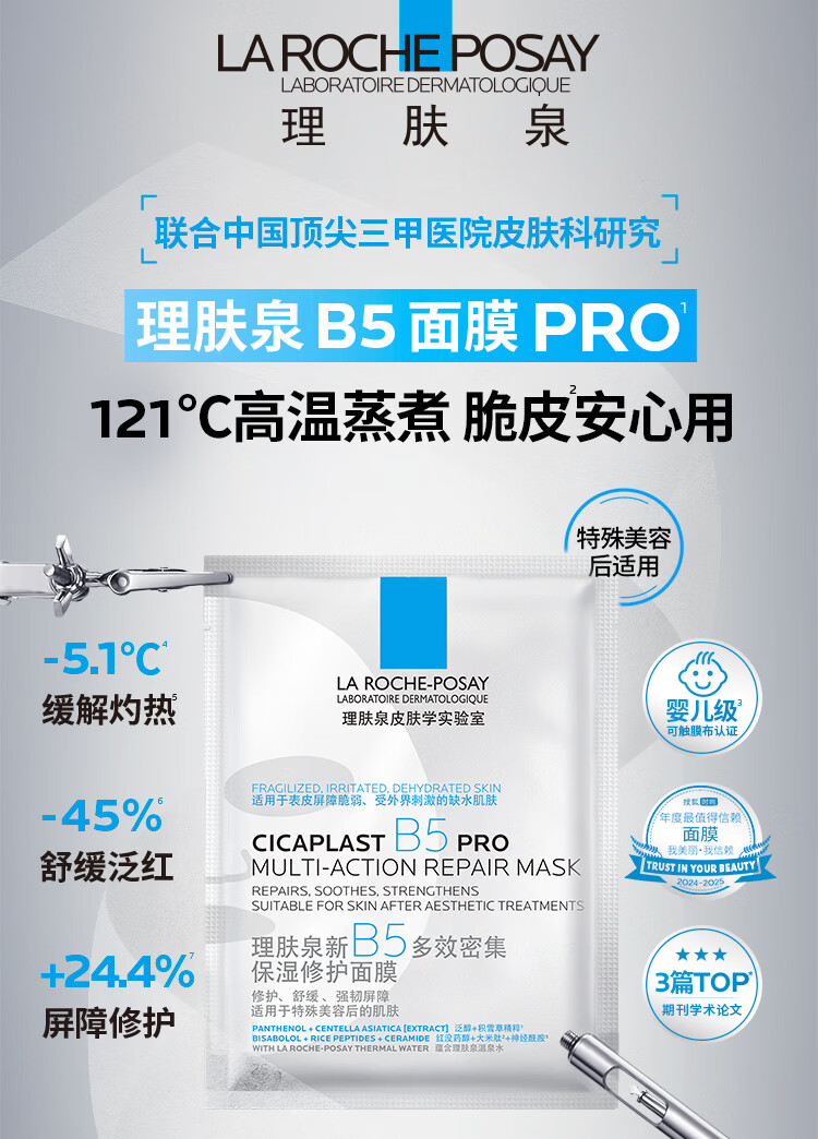 理肤泉B5面膜PRO5片【体验装】 补水保湿紧急修护舒缓泛红护肤品旅行装