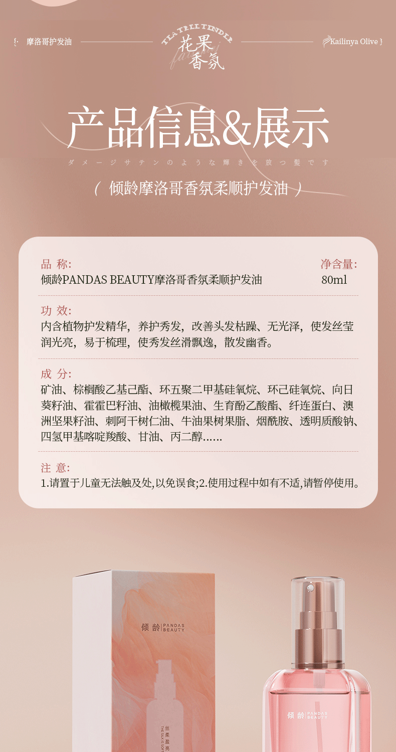 BEAUTY NOTES摩洛哥护发精油修复干枯养发受损毛躁香水烫染护理素头发免洗80ml