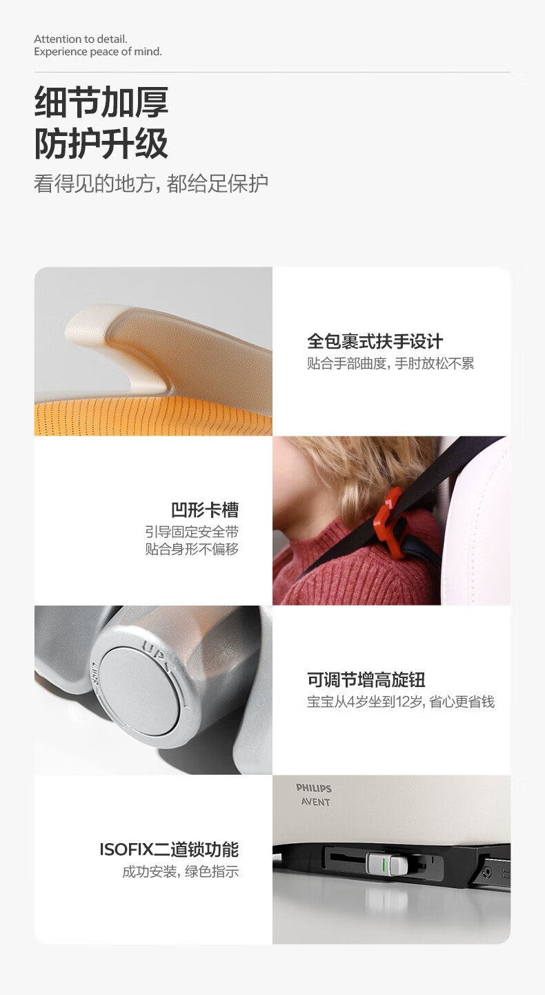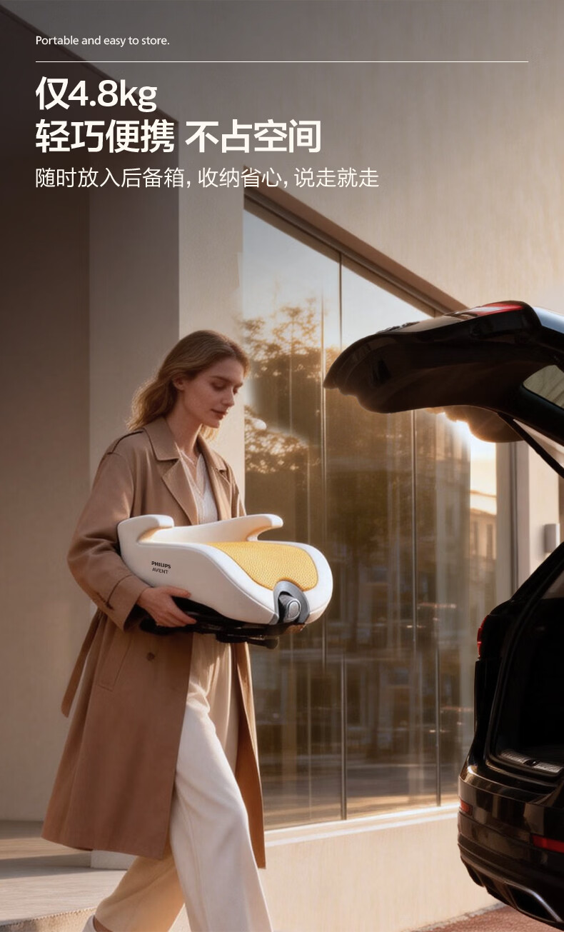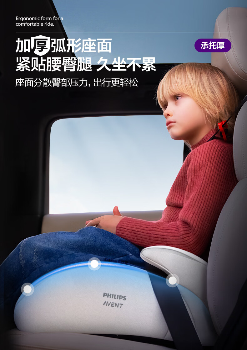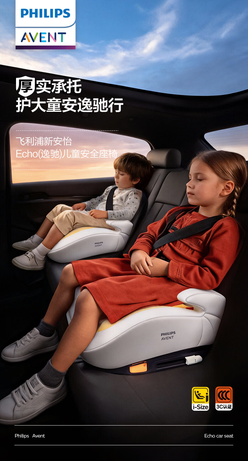 飞利浦逸驰ECHO儿童安全座椅增高垫4-12岁便携式可调节3C