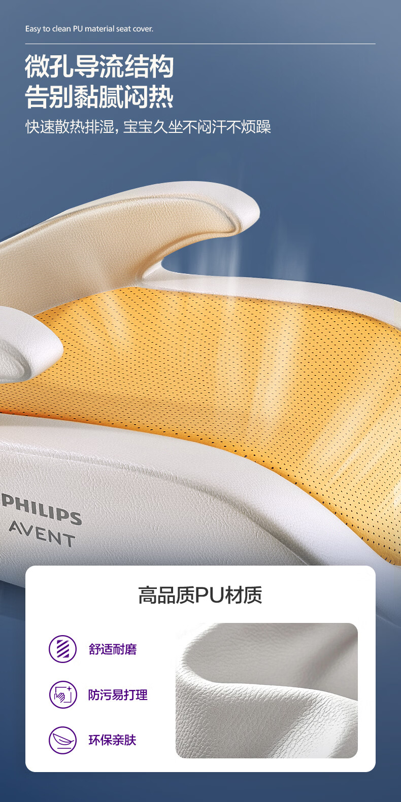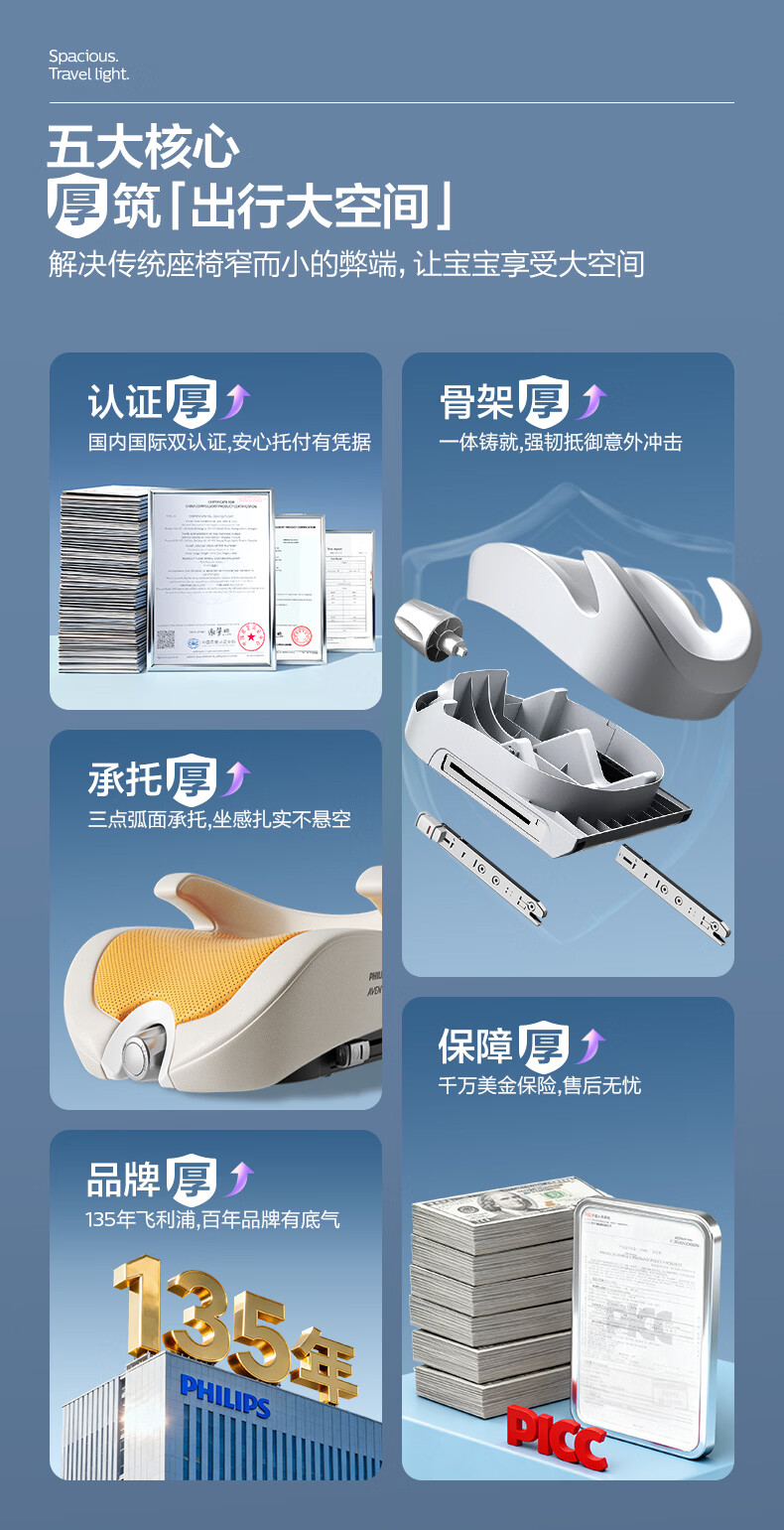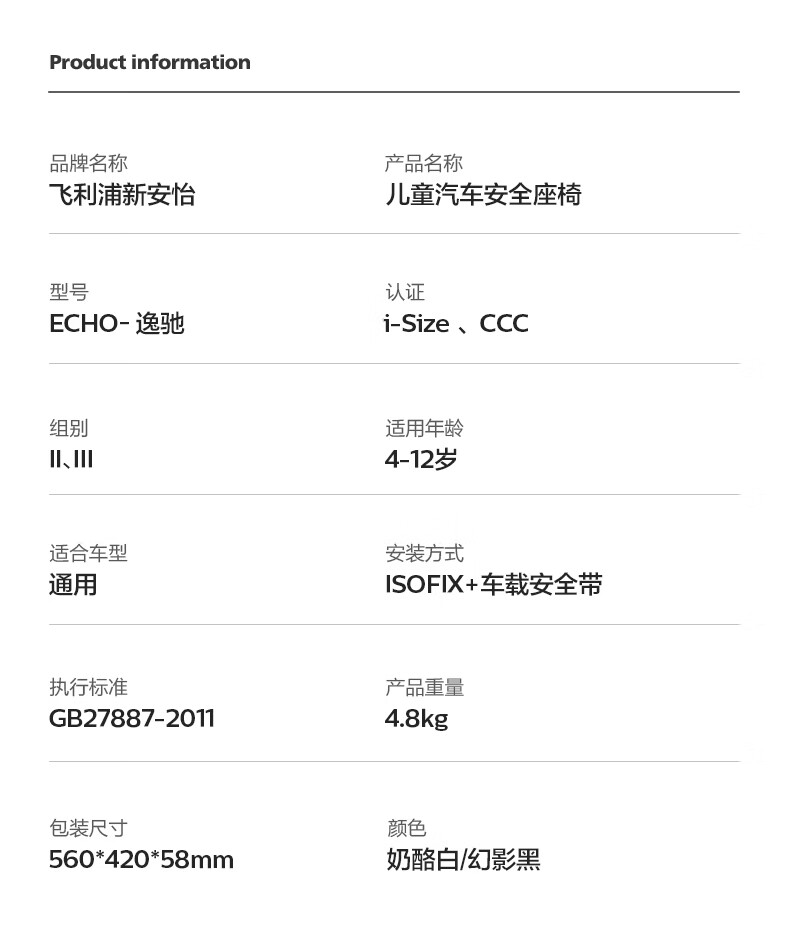 飞利浦逸驰ECHO儿童安全座椅增高垫4-12岁便携式可调节3C