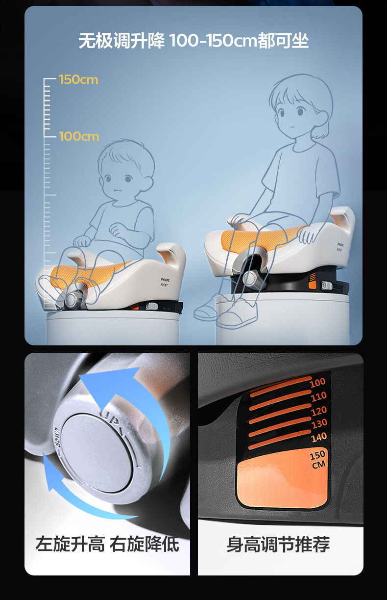 飞利浦逸驰ECHO儿童安全座椅增高垫4-12岁便携式可调节3C认证幻影黑