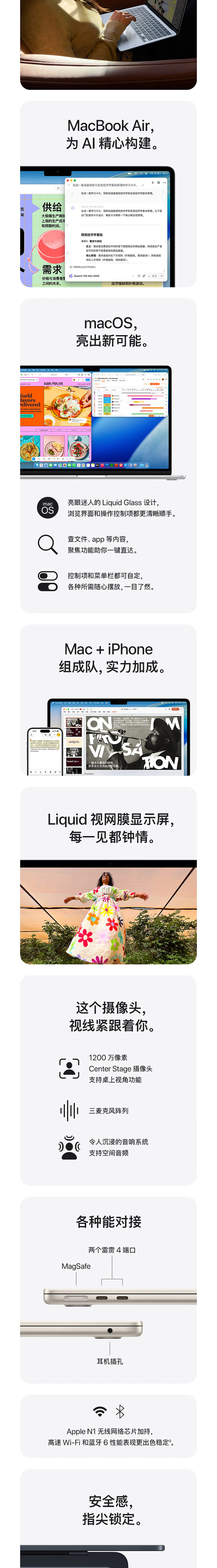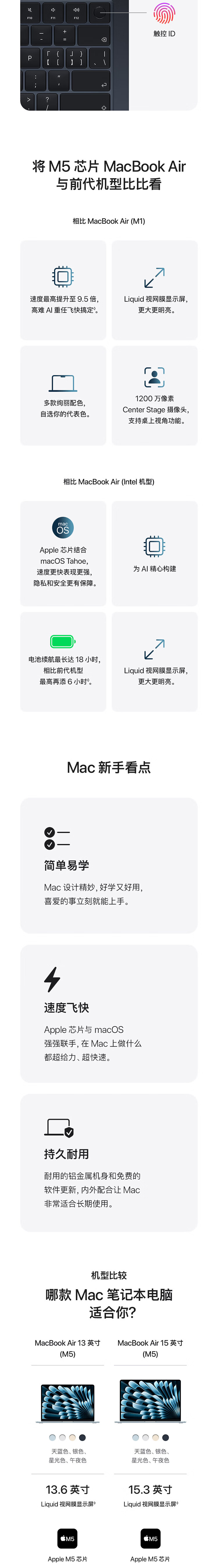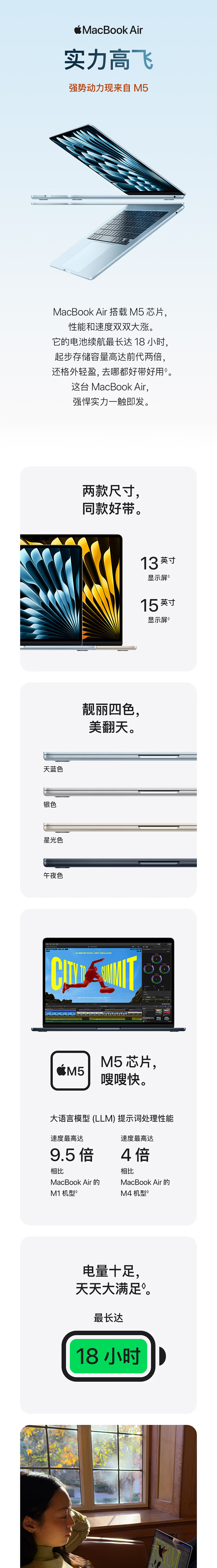 Apple/苹果AI/MacBook Air15英寸M5 (10+10核) 24G 1T星