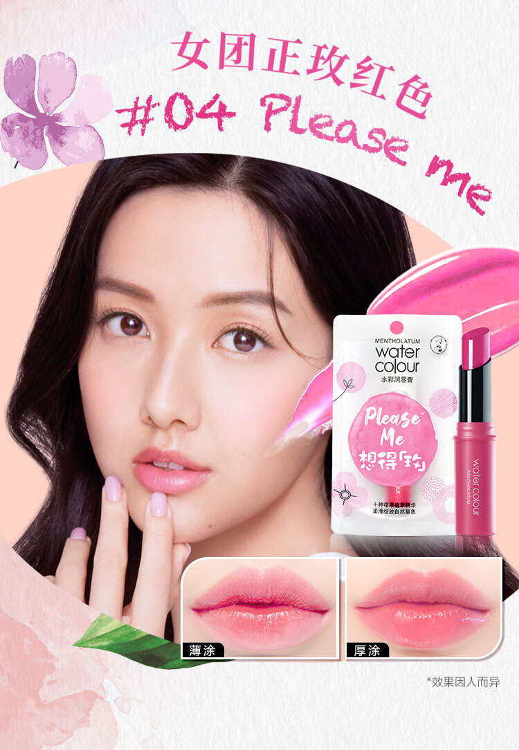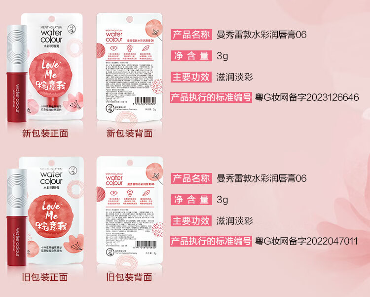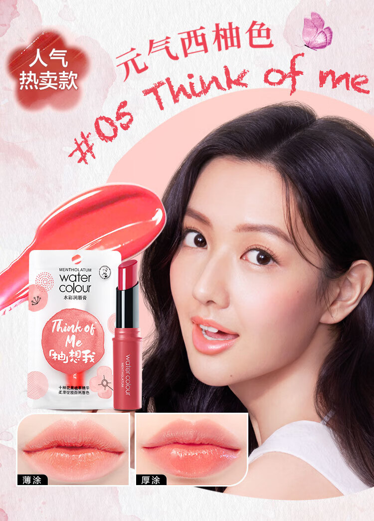 曼秀雷敦水彩有色润唇膏女生素颜补水保湿滋润淡唇纹防干裂 01我要红3g