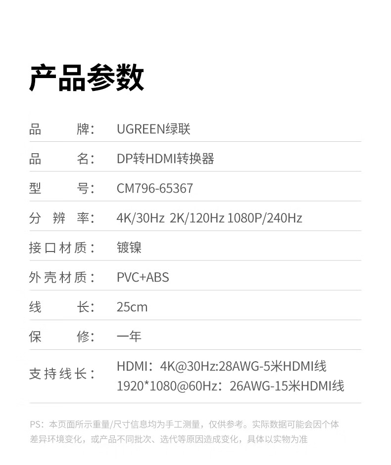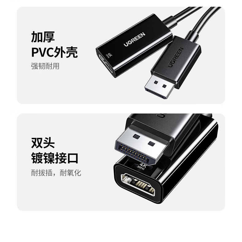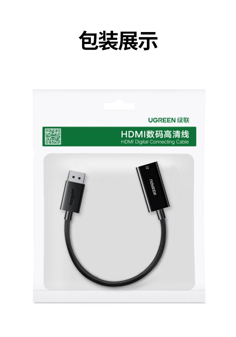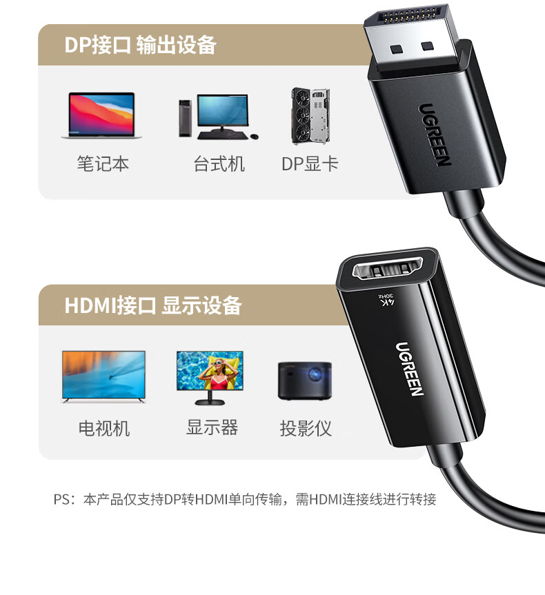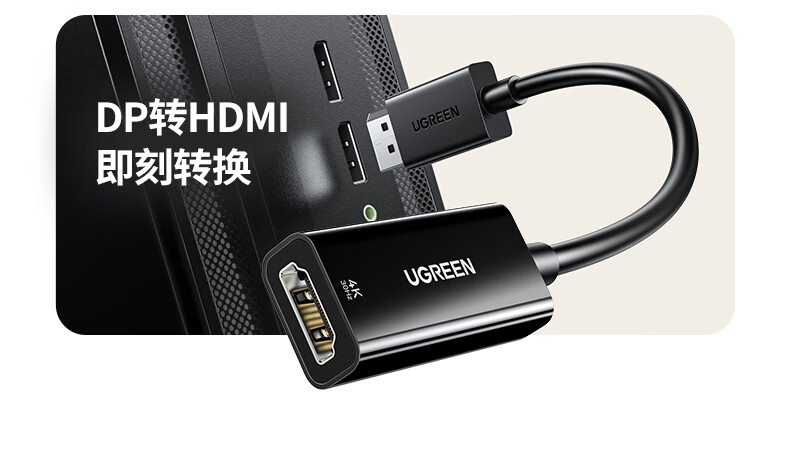 绿联DP转HDMI转接头4K高清DisplayPort公对母视频转换器适用电脑显卡台式机接显示器投影仪连接线65367