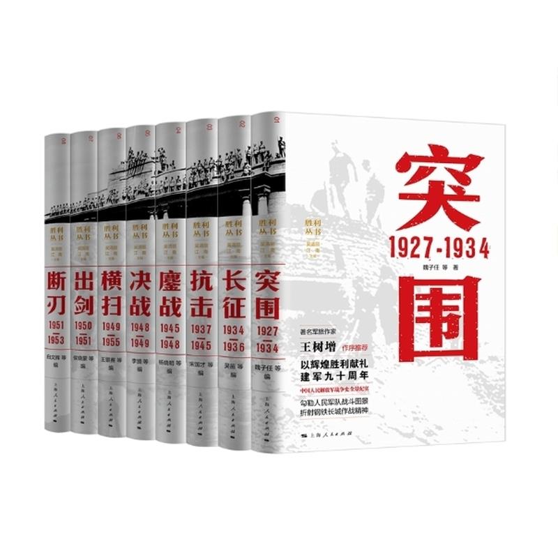 胜利共分8册,包括《突围1927-1934》《长征1934-1936》《抗击1937-1945》《鏖战1945-1948》《决战1948-1949》《横扫1949-1955》《出剑1950-1951》《断刃1951-1953》,从中国人民军队在土地革命、抗日战争、解放战争和抗美援朝经历的战役中,挑选了64场具有代表性的著名战役,例如,八一南昌起义、平型关大捷、百团大战、孟良崮战役、渡江战役、上甘岭战役等,从独特的战术视角,用通俗生动的语言对其背景、发展和结局进行了复盘讲解,全景式地呈现了决策和作战的真实进程,展现了中国人民军队建立、成长和壮大的波澜壮阔的画卷。