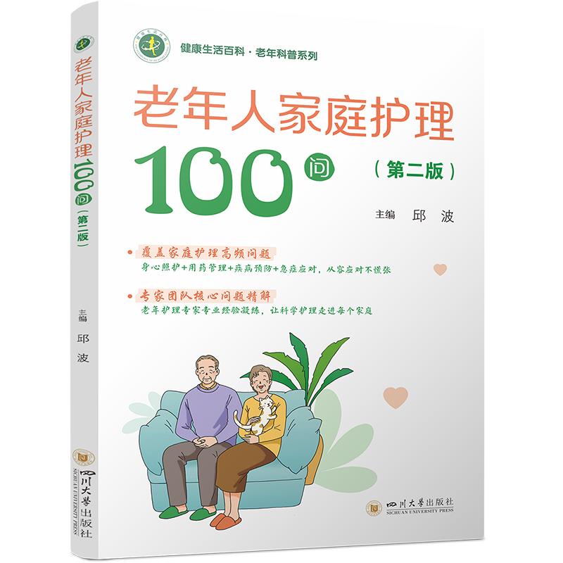 本读本《老年人家庭护理100问》,从老年人饮食、运动、合理休息与睡眠、心理调解,老年人日常生活的家庭护理,老年病人的家庭护理、老年人神经系统疾病家庭护理、老年人心理疾病的家庭护理、老年人呼吸系统疾病的家庭护理、老年人消化系统疾病的家庭护理、老年人代谢与内分泌疾病的家庭护理、老年人泌尿系统家庭疾病的家庭护理、老年人血液疾病的家庭护理等方面,用通俗易懂的语言,科学地回答100个问题。