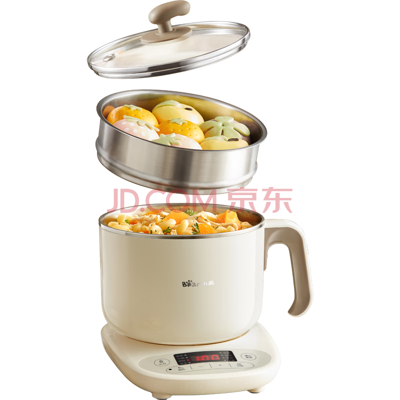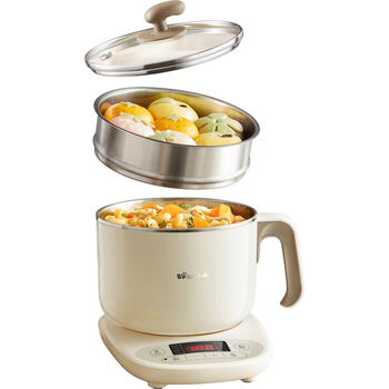 小熊(Bear)不锈钢电煮锅 电蒸锅 宿舍多功能锅小电锅 0涂层蒸煮一体可预约 小型1-2人用分体式 C12N7 配蒸笼
