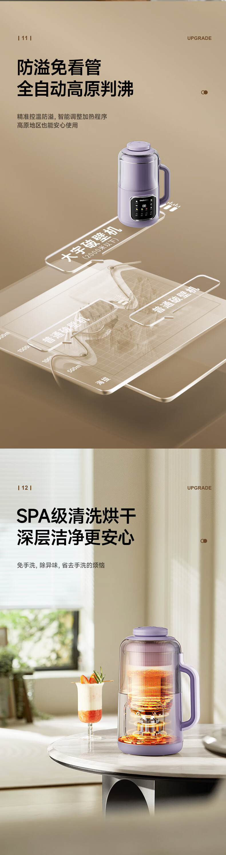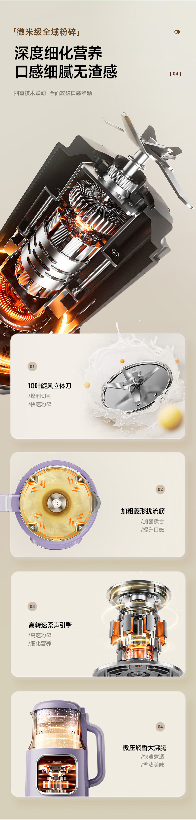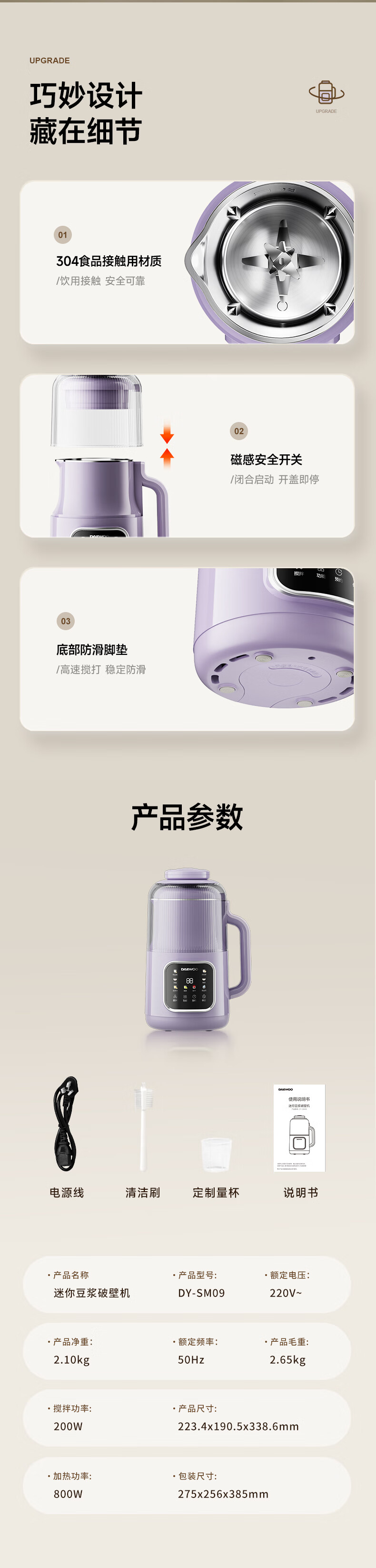 大宇(DAEWOO)破壁机家用豆浆机 1L微压2-3人食全自动轻音五谷杂粮免煮免手洗榨汁料理辅食机 紫色SM09